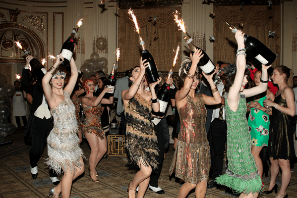 Leonardo stuck to his VIP table throughout the night, but ran up to greet friend Jay-Z, who arrived just after midnight, complete with a massive entourage. Guests crowded the entrance buzzing with the anticipation of Jay-Z’s arrival, but he and his entourage managed to sneak in through a side entrance and make their way past the crowd and into the party. Much like his character, Jay Gatsby, Leonardo captivated the attention and curiosity of the entire party and was the true star of the evening. Busy celebrating the film premiere, he didn’t even seem to notice that his table was swarmed throughout the night as guests tried to take photos of him on their phones. The celebration really kicked off with an amazing procession of Moët & Chandon champagne bottles, including vintage 1921 bottles of Moët & Chandon as seen throughout film, The Great Gatsby. As flappers and Jazz dancers made their way through the crowd with sparklers and bottles of Moet, Carey Mulligan toasted with friends and paused to accept multiple complements from guests walking past her table on her performance as Daisy in the film. Isla Fisher stayed close to hubby Sasha Baron Cohen, while Tobey Macguire and Jake Gylenhaal held court at their own table.