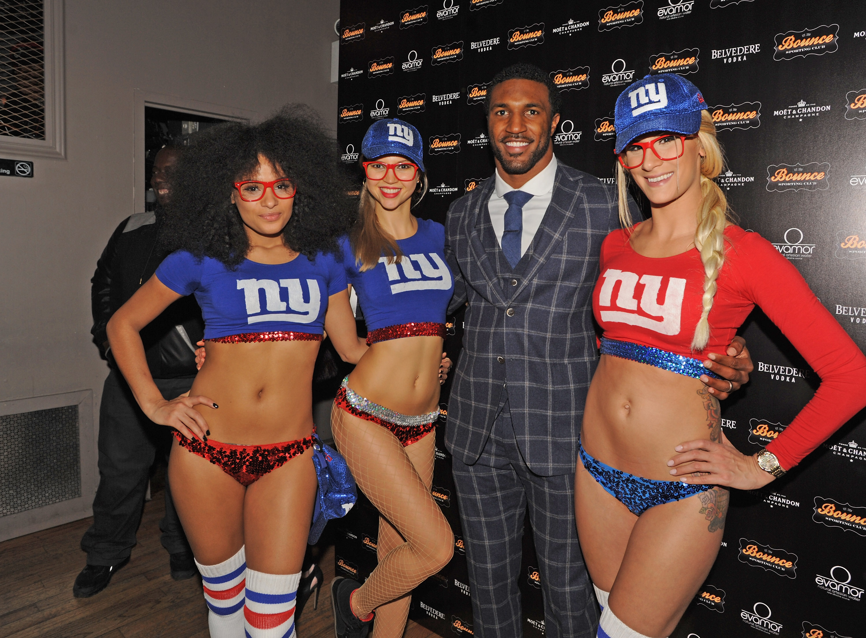 Bounce Sporting Club and New York Giant’s Jason Pierre-Paul, Justin Pugh, Antrel Rolle, Ryan Mundy, Terell Thomas, Stevie Brown and more hosted a night for fans to kickoff Professional Football’s biggest weekend in New York City. Although the New York Giants might be in the Super Bowl, they still wanted to celebrate the game being played at their home. Guests enjoyed signature menu light-bites, Belvedere cocktails, and toasted with Moet & Chandon champagne. In true Bounce Sporting Club fashion, guests were treated to a surprise performance by Busta Rhymes and enjoyed beats spun by DJ Irie, the Miami Heat’s resident DJ. Former New York Giants Lavar Arrington was up on his feet all night dancing along to the musical performances, while other notables enjoyed VIP bottle presentations with sparklers server by waitresses clad in New York Giants gear.
