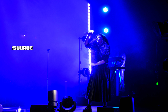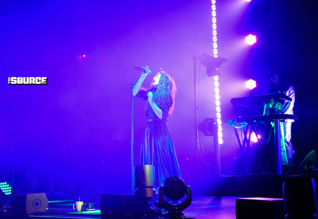 At around 9PM, it was time for Lorde! Hazy blue lights shined on the stage, and then all of lights went out. The crowd went wild. Then a lone spotlight appeared on a microphone. Lorde appeared on stage and walked out slowly from stage left. She was clad in a flowy above-the-ankle black skirt and a black shirt tucked in and belted. She was also wearing her signature black platform boots. She sang the first few lines of “Glory And Gore” and then the lights went out. The next few lines echoed, and then the lights went out again. As she sang “Glory and Gore,” we enjoyed watching Lorde perform her signature dance moves and couldn’t take our eyes off her.