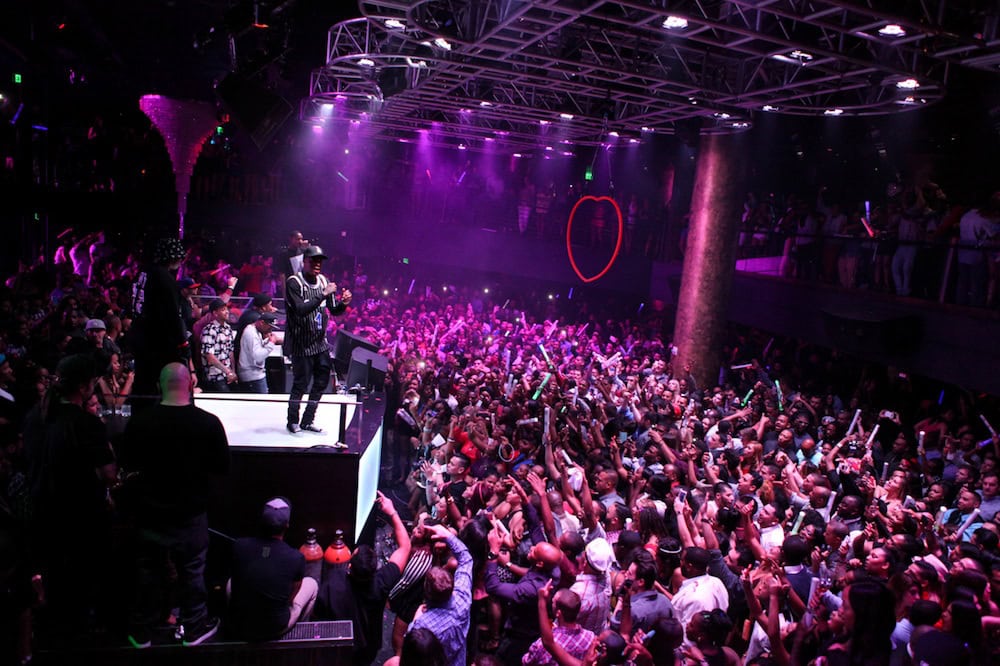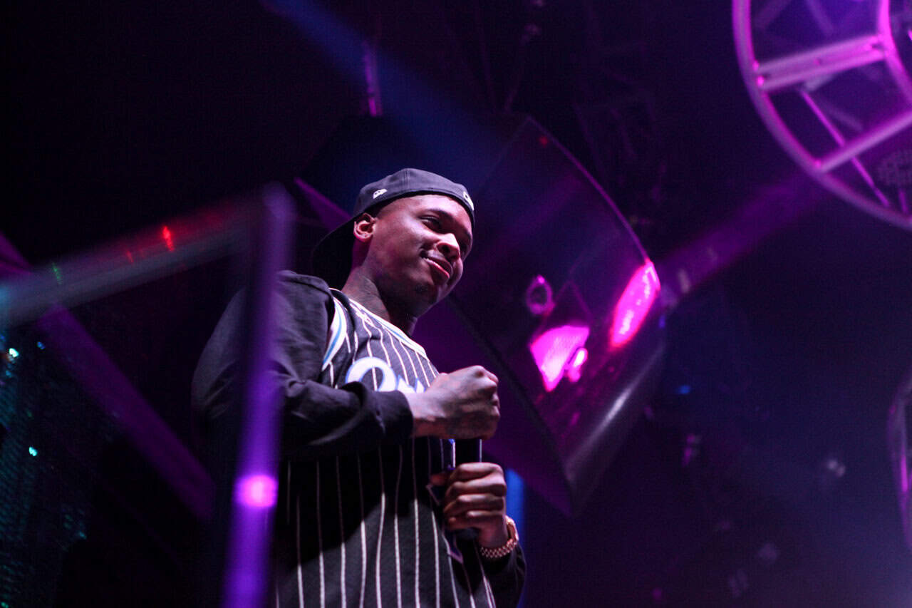 The west coast was definitely in the building as young, hip-hop star YG performed live at HAZE at ARIA last night. The “My Hitta, My Hitta” artist and his entourage arrived at HAZE at 1 a.m. and posed for pics on the red carpet. Inside, YG and friends were escorted to two exclusive VIP tables behind the DJ Booth where they took in the scene before his big performance. Then at 1:30 a.m., YG’s friend and super producer, DJ Mustard (of “Rack City,” “Paranoid” and “Show Me” fame) jumped in the booth and took over the ones and twos to hype up the at-capacity crowd. After Mustard’s five-minute pre-show, YG joined him on stage and the entire nightclub erupted with screaming and applause for him. Hard core fans loudly sang every word to each song he performed during his set. YG kept the energy going as he danced for the crowd and performed club bangers including “My Hitta, My Hitta,” “Who Do You Love,” “Left, Right” and “Paranoid” by fellow Cali rapper Ty Dolla $ign. After a fun-filled night, he returned to his table to celebrate with Hennessey, before leaving with his friends.