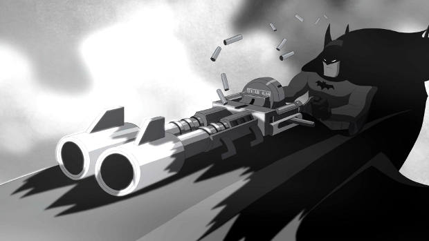 Batman: Strange Days will feature the caped crusader clashing against one of his earliest nemesis, Doctor Hugo Strange, as well as large yet-to-be-identified monster during his earlier days as a superhero. Stills from the short reveal that the film will be either entirely in black and white or a sepia vintage film noir aesthetic. Stills also show Batman firing an enormous gun in Timm’s classic artistic style, which looks simply awesome.