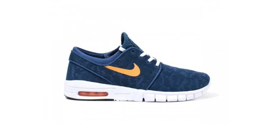 Nike SB and Stefan Janoski add yet another must-have to their sneaker line. The “Slate” sneaker will feature a navy mesh upper, with tiger camo designs, and a contrasting atomic mango Swoosh which makes it a cool and comfortable Spring shoe. The sneaker’s sole will be comprised of a white Air Max and Free hybrid, featuring the trademark Air Max bubble and Free’s traction, adding to the kick’s comfort and versatility. Additionally the sneakers have white laces, and atomic mango shocks to match the sole and Swoosh. The Nike SB Stefan Janoski Max “Slate” are available at Nike SB retailers all over — get ’em while they last.