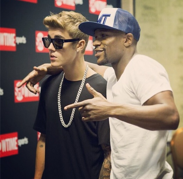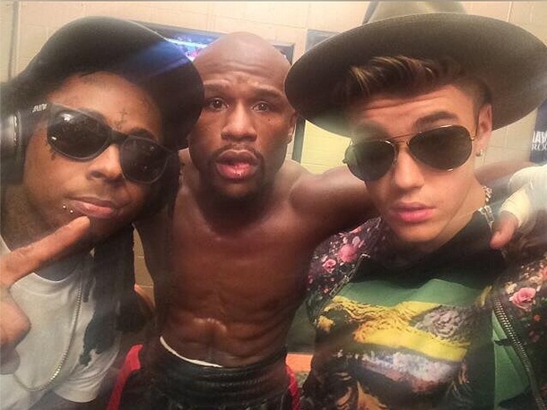 Clowns, jugglers, twirlers and more got the crowd hype and started the show as Mayweather walked out with Justin Bieber and Lil Wayne who performed his new single “Believe Me”.