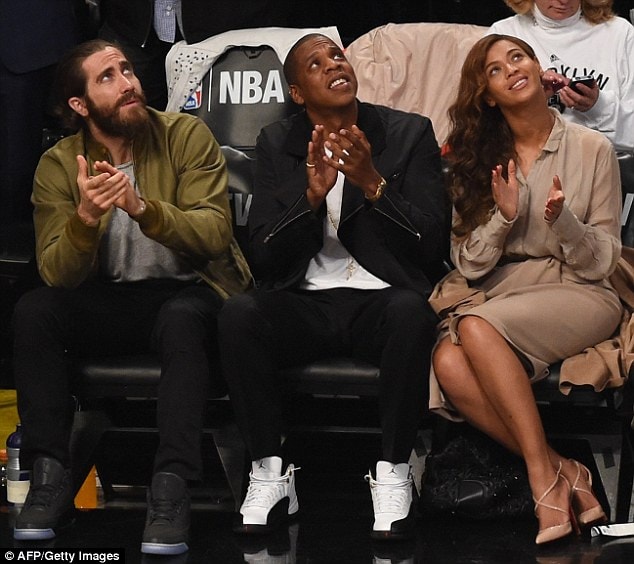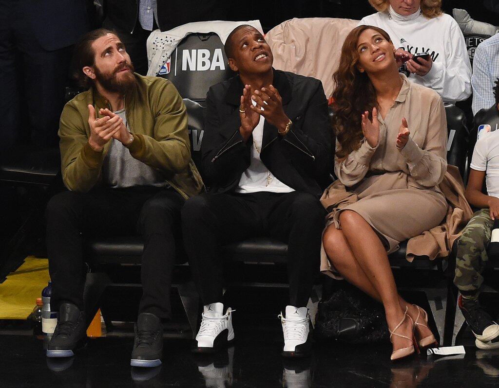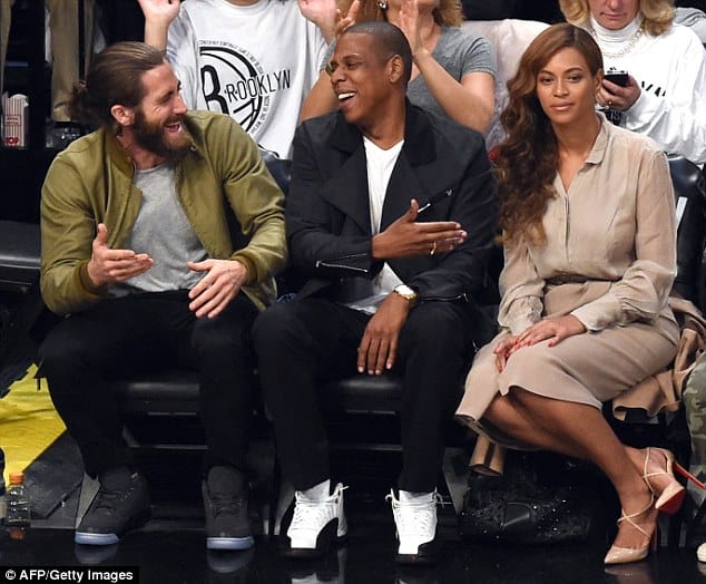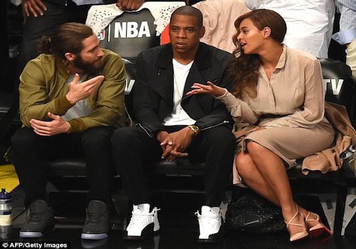 On Saturday night Jay Z and Beyonce were in attendance in their usual court side seats for the Brooklyn Nets game. This time however they weren’t alone and were joined by a friend, actor Jake Gyllenhaal. The trio sat court side as the Nets defeated the Heat 104-90. I would love to know what they were discussing but the funny pictures alone were enough to make social media come up with their own stories.