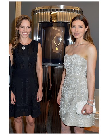 Actresses Jessica Biel and Hilary Swank sparkled in Tiffany & Co. diamonds as they celebrated the grand opening of Tiffany & Co.’s new store on the Champs Élysées in Paris.