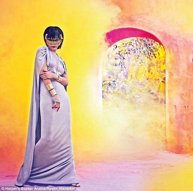 Cover girl Rihanna shows some modesty as she poses for Harpers Bazaar Arabia