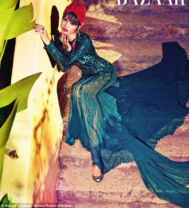 26-year-old Rihanna graces the cover of Harper’s Bazaar Arabia and promotes a new tagline, “The new modesty. Cover up in style.” The pop princess may have recently walked the CDFA red carpet in a sheer, see through dress with over 200,000 Swarovski crystals, but she takes a different route while posing for the Middle-Eastern fashion outlet.