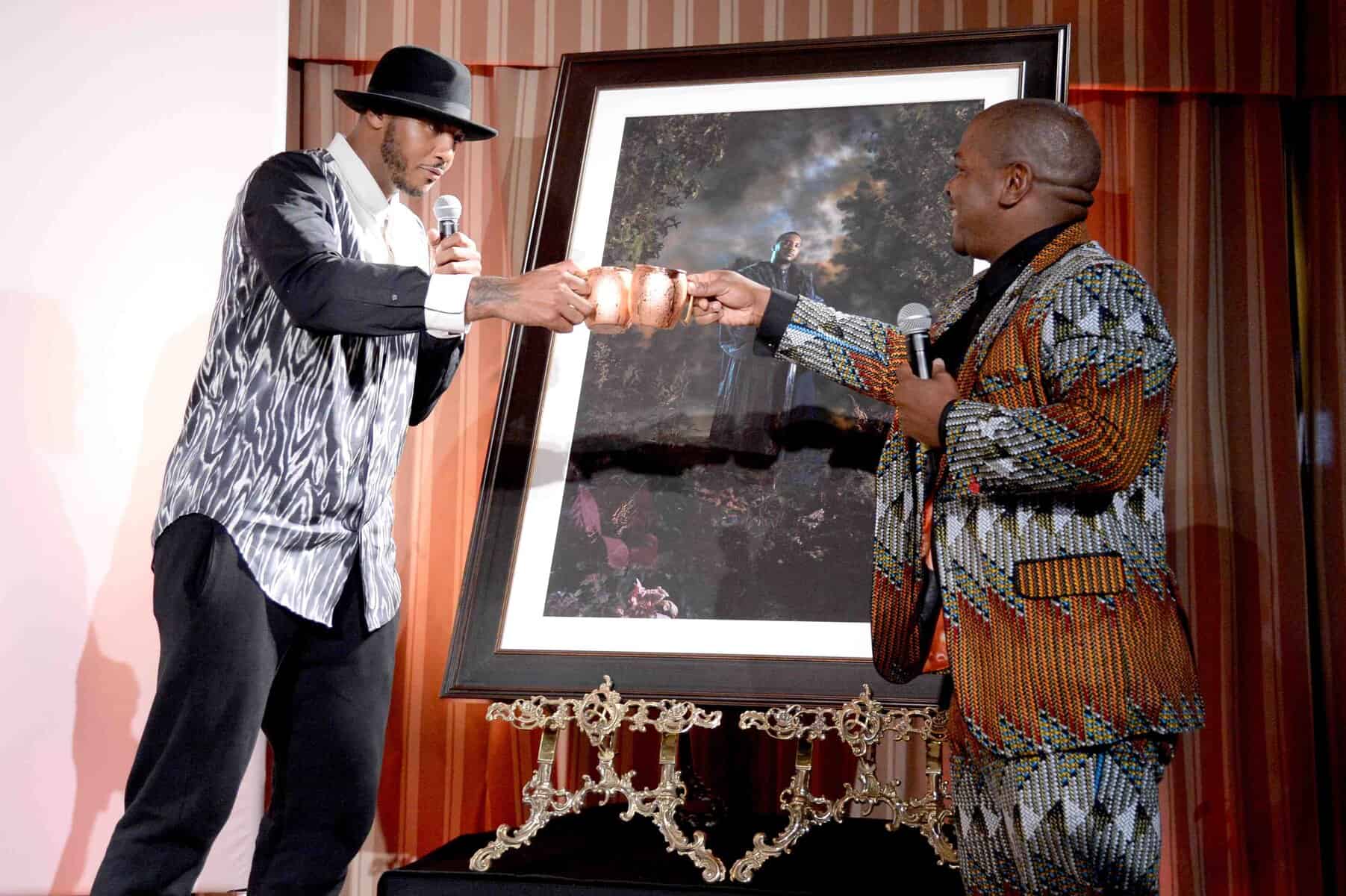 The Grey Goose Le Melon hosted event featured an original royal portrait by Kehinde Wiley of Carmelo Anthony. To celebrate the unveiling, celebrities, musicians, and LA socials joined together as Maximillian Chow, of Mr. Chow, moderated the live Q&A between Kehinde and Carmelo. The duo discussed their journeys to extraordinary achievement. The portrait was then revealed for the first time, where Carmelo, a known fan of Kehinde’s work, was visibly proud of the piece.
