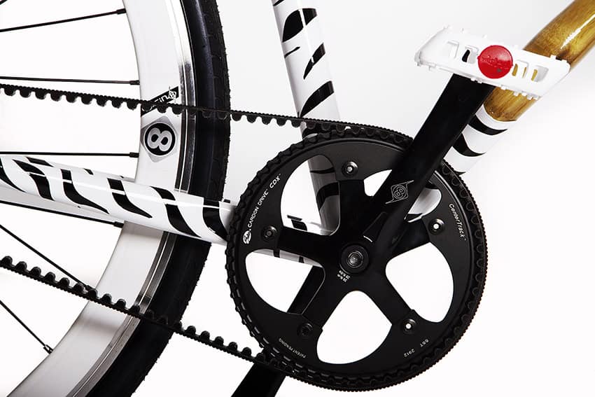 The fixed-gear bike marks another new vertical foray for Akomplice outside the bounds of apparel. The bike sports a truly unique design with the “Into the Wild” theme manifesting across the frame with a white base offset by stark animal stripes reminiscent of a zebra. If you’re in the market, be sure to be swift with your clicks when the bike drops Sunday, July 27th at 9:00 AM EST on the Akomplice Webstore. Priced at $2,500.