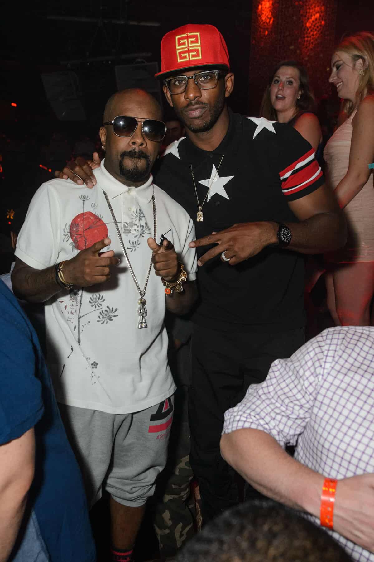 After dinner, the entire group headed upstairs as CP3 hosted the night at TAO Nightclub. Upon arriving at their VIP table on the dance floor, producer and rapper Jermaine Dupri came over to CP3’s table to say hello and pose for a few photos with the NBA star before heading up to join Five in the DJ booth. Chris and his wife Jada danced as Five dropped Jason Derulo’s latest single “Wiggle.” Other notable NBA stars in attendance included free agent Dahntay Jones, Portland Trail Blazers point guard Mo Williams, New York Knicks shooting guard J.R. Smith, Detroit Pistons power forward Josh Smith and Denver Nuggets power forward Kenneth Faried.