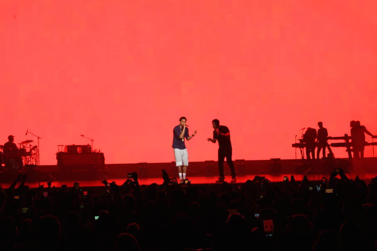 The show continued and Drake didn’t miss a beat. Every time he stopped to talk to the crowd you could feel the anticipation build with wonderment. Who was coming next? We had our answer soon, his “light skin twin brother “J.Cole hit the stage to perform “Can’t get enough” & “Power trip”. Afterward the two shared a moment on stage, like usual singing the others praises. Most interesting was Drake going out of his way to clarify that “Kendrick Lamar is one of the kings in this game” going on to say that sometimes things are often made out of nothing “that’s one of the hardest n—-s alive. He should be standing right [here].”