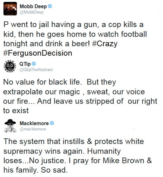 Hip Hop responds to the verdict of the Mike Brown case.