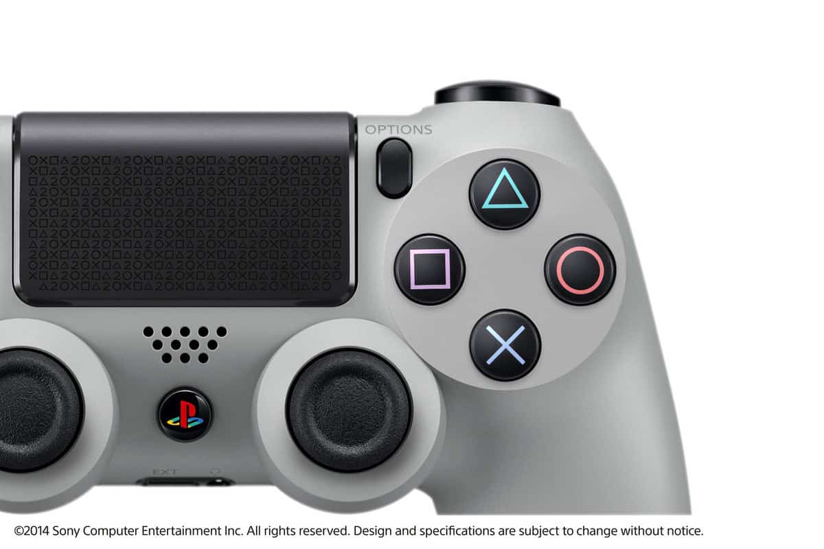 In addition, the original Playstation logo: a red P planted atop a tricolored S. It also includes a matching gray DualShock 4 controller, with a Home button that also contains the original logo.