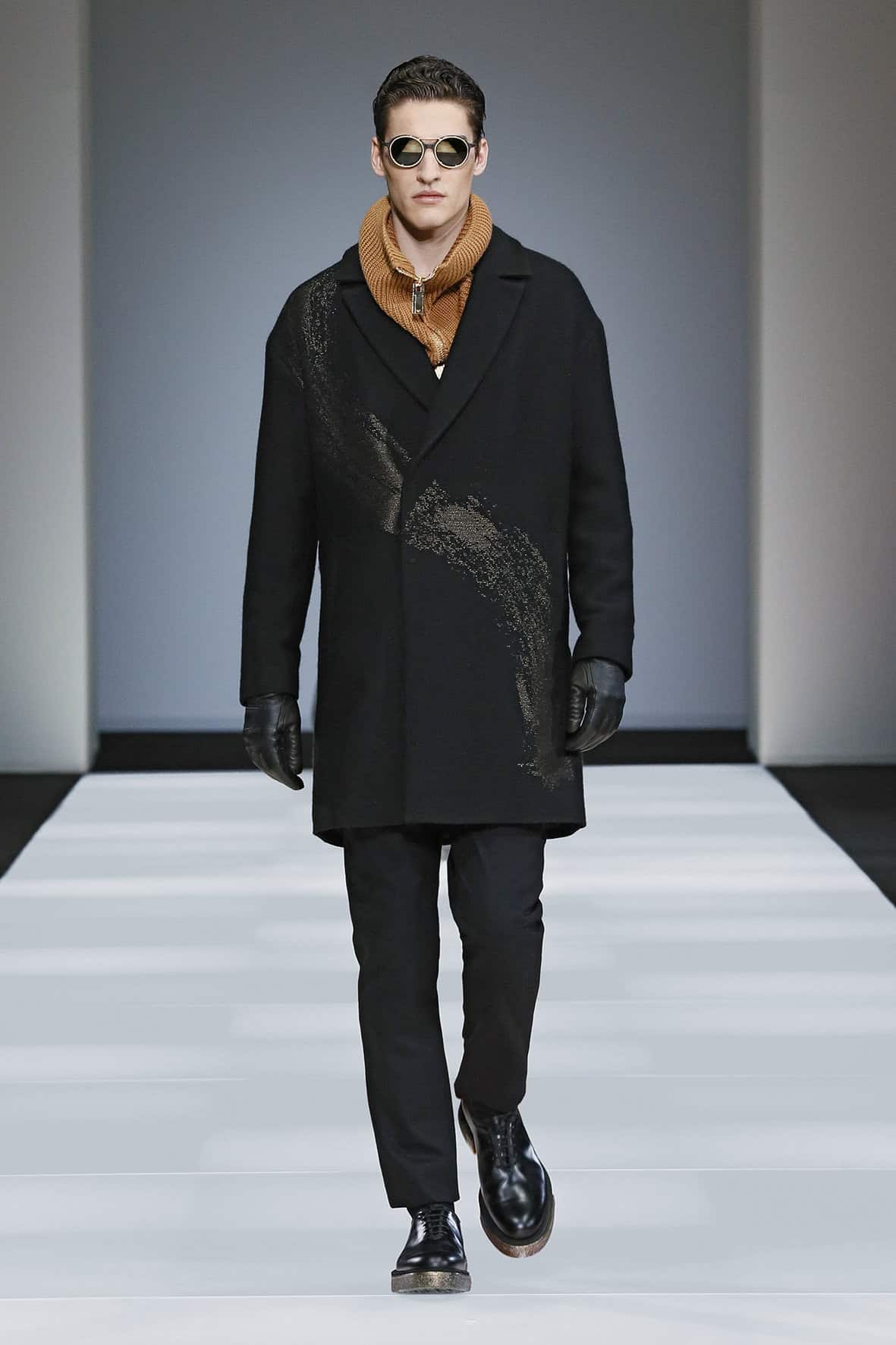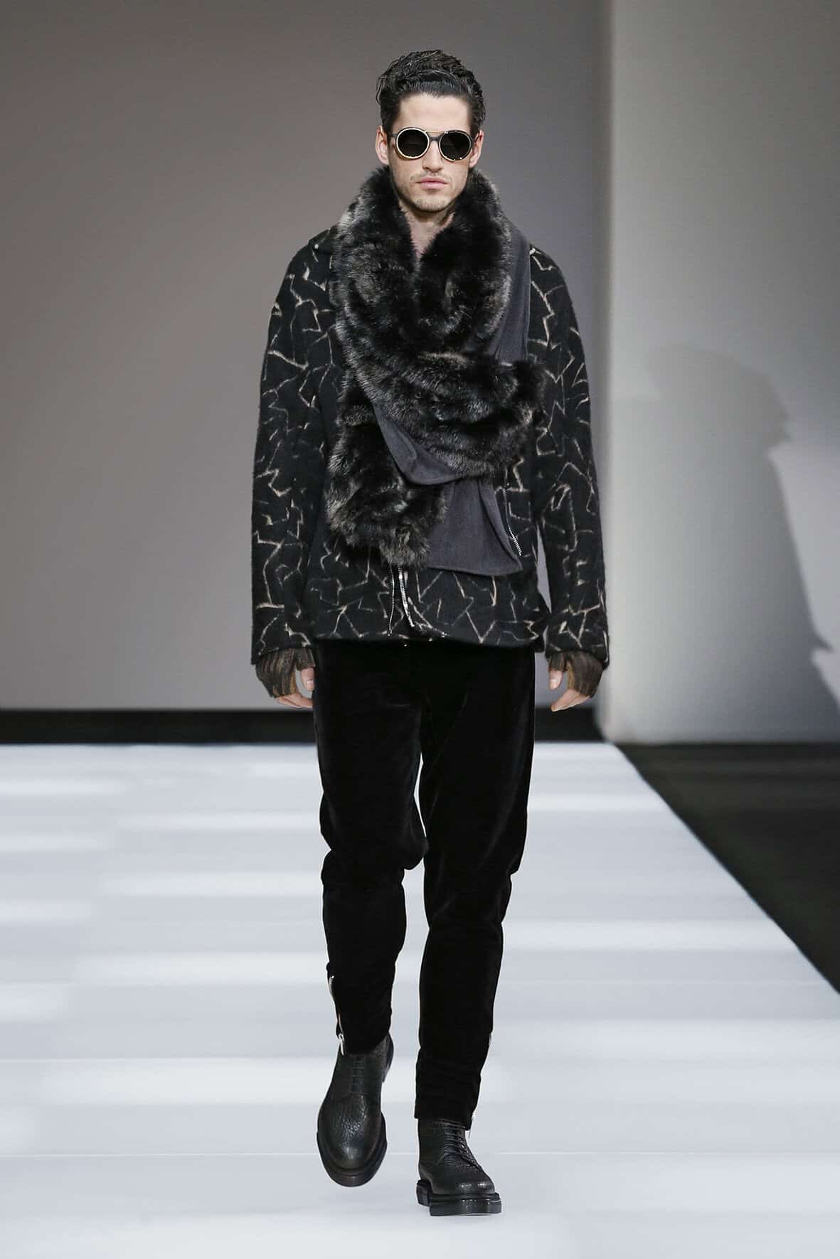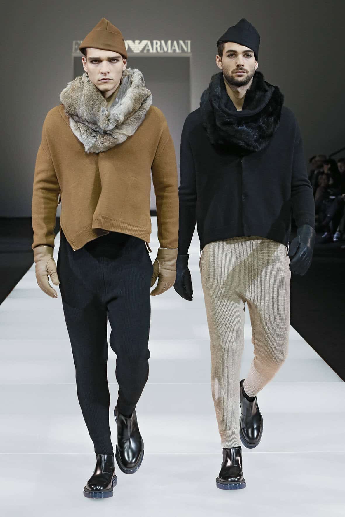 Emporio Armani embraced knitwear for their autumn/winter 2015 men’s collection. The line-up consists of a color palette of black, grey, camel, blue, hints of chocolate and metallic touches of satin gold and silver. Making the entire collection looking cozy and comfortable, Emporio Armani sticks to slightly loose but wearable garments this season that fits in with the modern demeanor of couture fashion.