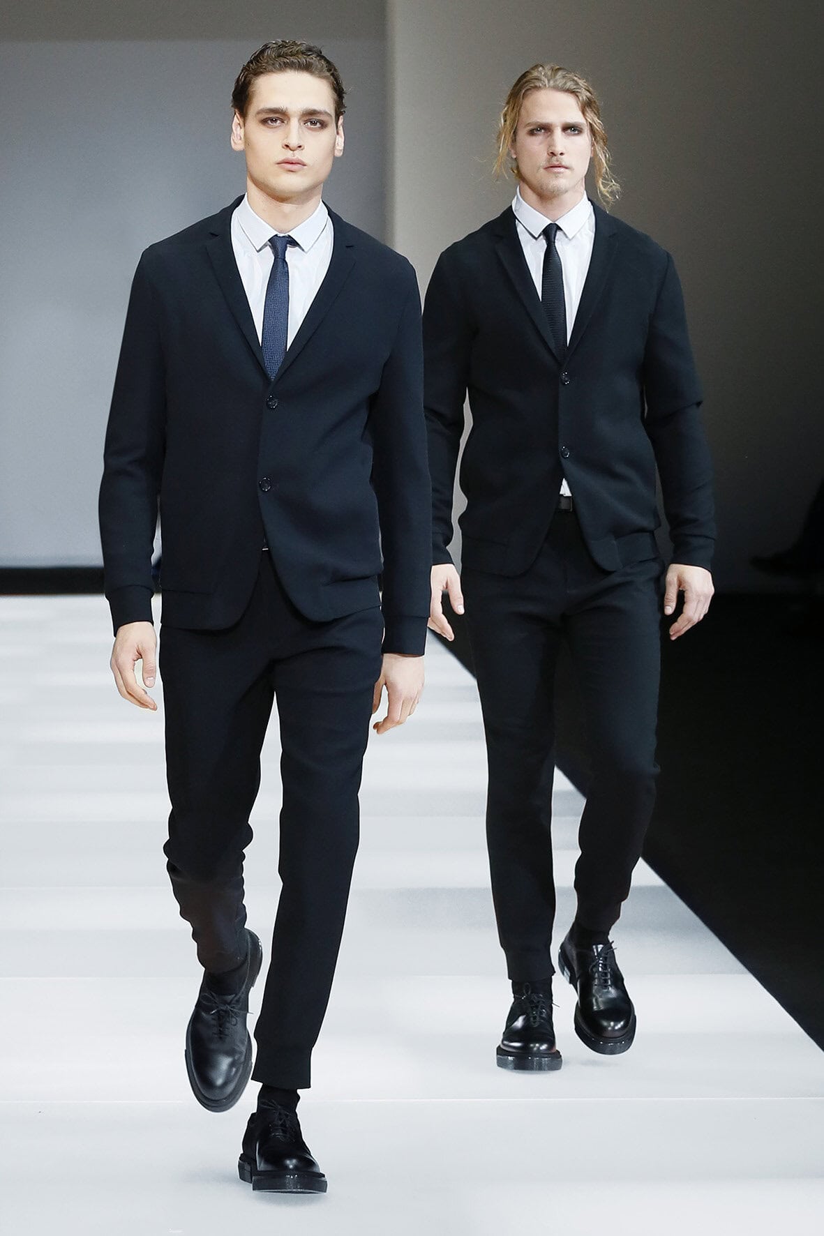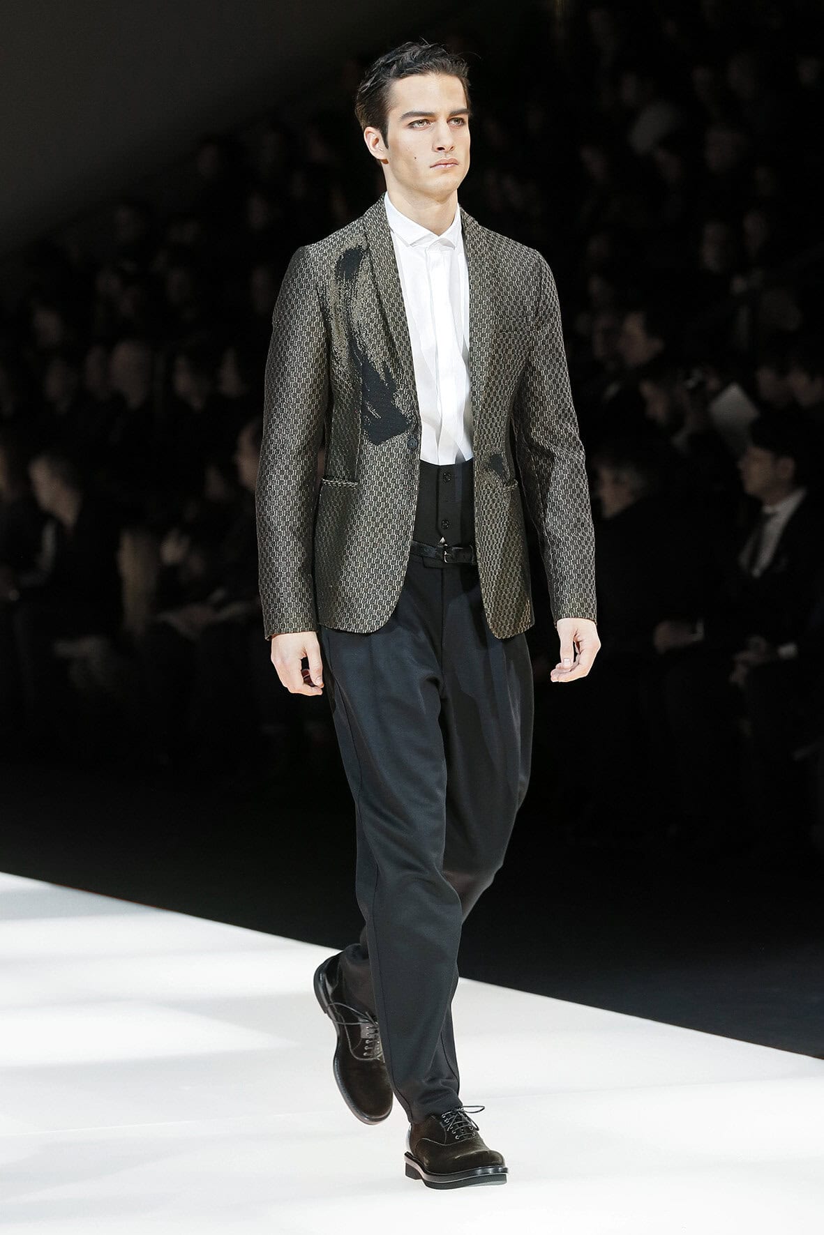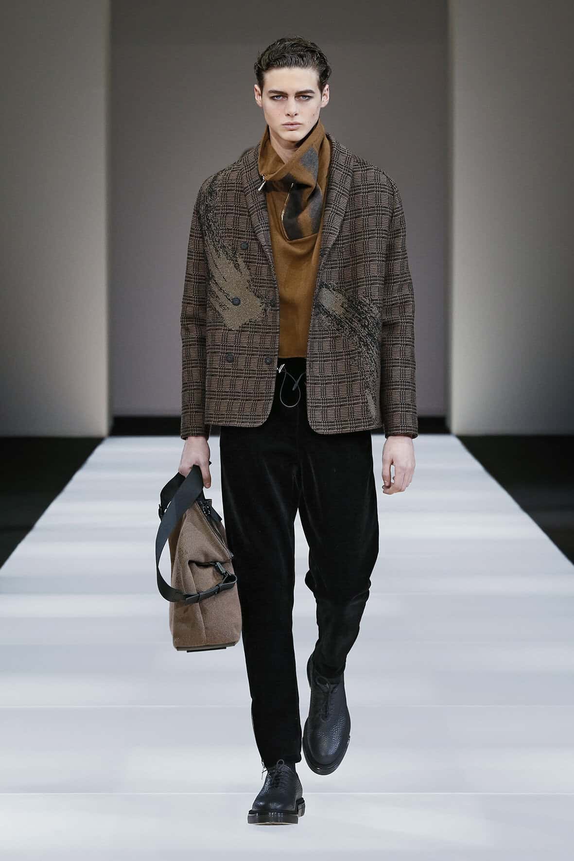 Emporio Armani embraced knitwear for their autumn/winter 2015 men’s collection. The line-up consists of a color palette of black, grey, camel, blue, hints of chocolate and metallic touches of satin gold and silver. Making the entire collection looking cozy and comfortable, Emporio Armani sticks to slightly loose but wearable garments this season that fits in with the modern demeanor of couture fashion.