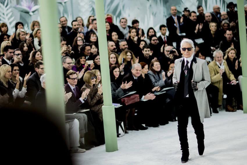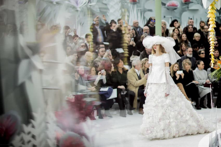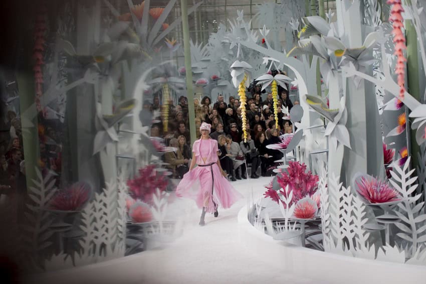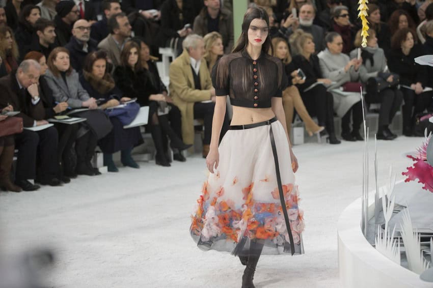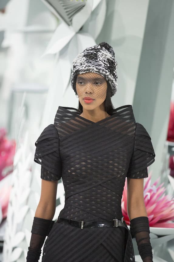 This season’s Chanel collection was presented in a floral inspired fashion show. The pieces featured long flowing, loose silhouettes and range of lighter sheer fabrics to heavier wool suits reminiscent of classic Chanel. The hats were on point as well adding an extra touch and balancing the composition of the ensembles. Lagerfeld maintained balance between youth and elegance by incorporating the midriff into elegant, avant-garde pieces featuring the Haute Couture Beanie. The show also featured Kendall Jenner on the runway, more or less solidifying her status as a full-blown supermodel. The show ended with an unbelievable wedding dress.