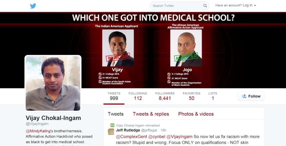 A representative from The Mindy Project cleared the air and said that “Mindy has been estranged from her brother for years. She was not aware of his decision to apply to medical school under a different name and race.” For those of you unfamiliar with how far this hoax goes, brace yourselves. Chokal-Ingam, Mindy Kaling’s older brother, runs a site called “almostblack.com” and is supposedly working towards a memoir titled “Almost Black: The True Story Of An Indian American Who Got Into Medical School Posing As An African American.” The memoir is about what Chokal-Ingam calls “a takedown of the system that will shine a light on the type of racial favoritism I experienced, a form of ‘affirmative action discrimination.” His transformation included shaving his head, trimming his eyelashes, going by his middle name Jojo and joining the Organization of Black Students. When it was all said and done he interviewed at several Ivy Leagues and was accepted at the St. Louis University School of Medicine in 1999. After dropping out of medical school, he later went on to receive an MBA from UCLA. On Chokal-Ingam’s twitter he refers to himself as Mindy’s “brother/nemesis” and Mindy has so far remained silent about recent events.