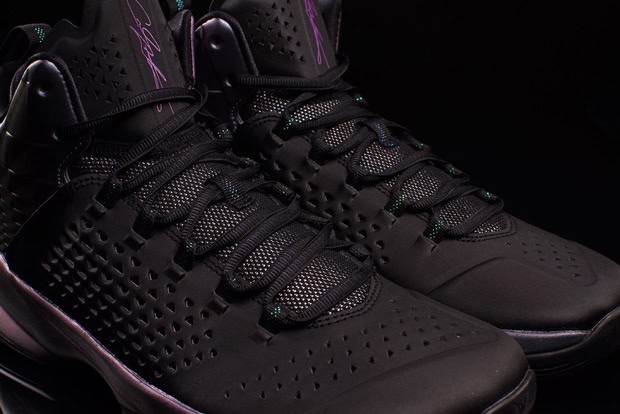 It was a lost season for Melo and the Knicks, but that hasn’t stopped Jordan Brand from releasing some distinct colorways of his eleventh signature sneaker. Most of the aesthetics were based on Melo sticking with his New York roots, from the Concrete Island M11s to the Redhook Sunsets. The official “Medium Berry” colorway definitely carries some Dark Knight inspiration in this menacing Gotham themed pair. Featuring a black and anthracite base, the purple tint arrives in a mettallic sheen on the unique midsole and heel. Get a better look at the latest Melo M11 colorway in our gallery above with a sweet price tag of $160 via Oneness.