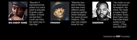 Malcolm set a tone, which recognized or not – influenced politically vocal artists like: the original Ice Cube, Public Enemy, Kendrick Lamar, X Clan, early Latifah, Bahamidia, Wise Intelligent, United Front and Afrikan Insurrektion Muzik, perhaps Azealia Banks -and – even Kanye West who in the beginning of his career showed elements of knowledge of self. Malcolm X remains a hood hero. Always will be. And being the international tastemaker that he has been over the last four decades Hip Hop has played a huge part in establishing his legacy with a generation, which is now passing it on to their children and grand’s. “My grandfather spoke out against the social ills that led to situations that produced criminal lifestyles,” said Malcolm Latif Shabazz. He told a journalist that his iconic elder relative was a beacon to people from all walks of life. Young Shabazz himself, was killed in suspicious circumstances in Mexico City in May 2013, but speaking in May 2011 he said, “One thing is though, people from all walks of life, from pimps to a drug addict, drug dealer, convicts, they all can all look at him and think, ‘He’s been in my shoes and look where he is now.’ What did he represent to our people? Inspiration He’s the epitome of change.” Kendrick Lamar revealed to the Madd Hatta morning show late last year was asked to name one book that changed something about him, he quickly replied; ‘The Autobiography Of Malcolm X.’ He said the book played a role in helping him speak with people from different walks of life.