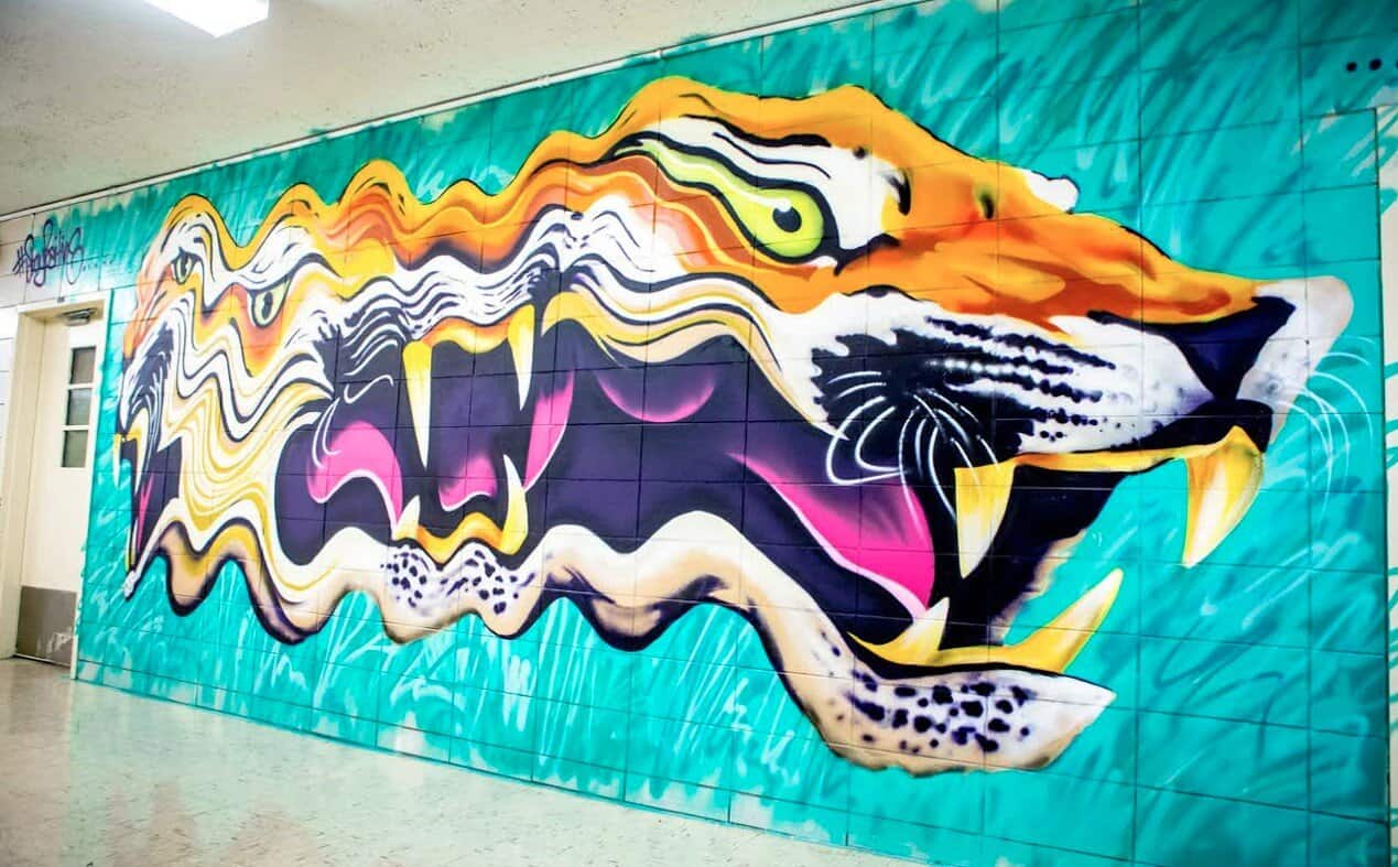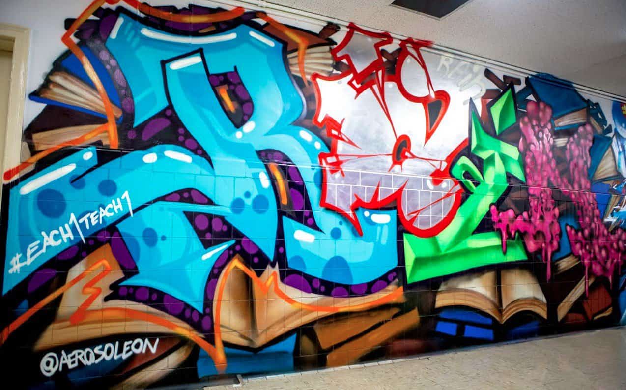The students said they want to see something they can relate to on the walls…so, we created a project called Operation Skittles to decorate 100% of August Martin’s walls: graffiti, murals, quotes, people, whatever inspired the students to come to school.”