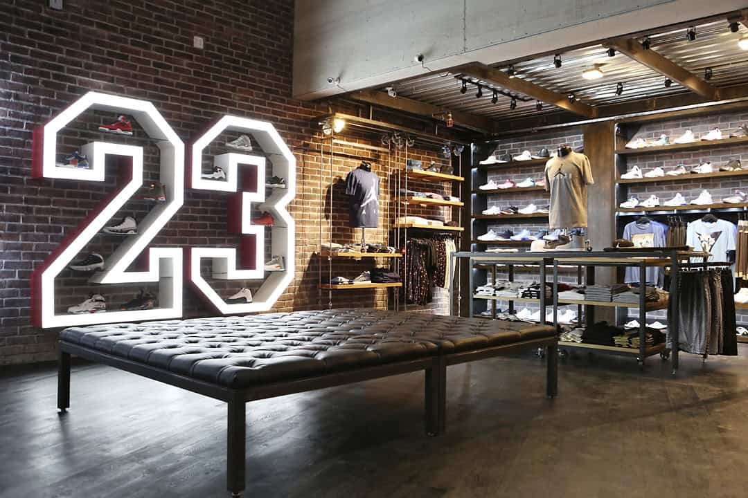 One of the things from the store that is a must see is the illuminated 23 in the Jordan shop which is actuallythe same height as Michael Jordan himself, 6’6”. The floor for the Nike shop is patterned in style of the pivot point of the Nike Air Force one. The newest Sheikh location is located on 745 S. Broadway, LA, CA 90014, and is now officially open and through the month of July to celebrate, Shiekh has some of the hottest re-releases slated to drop all month.