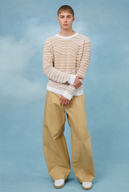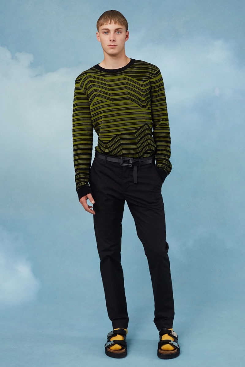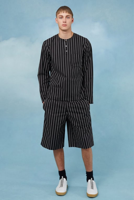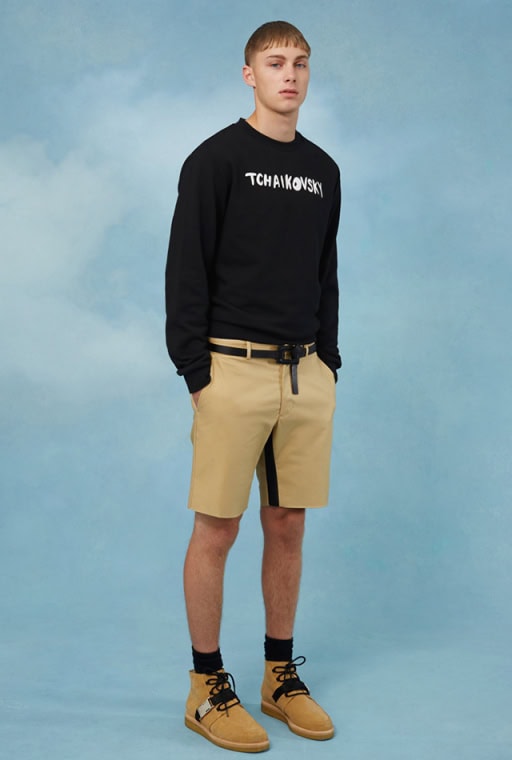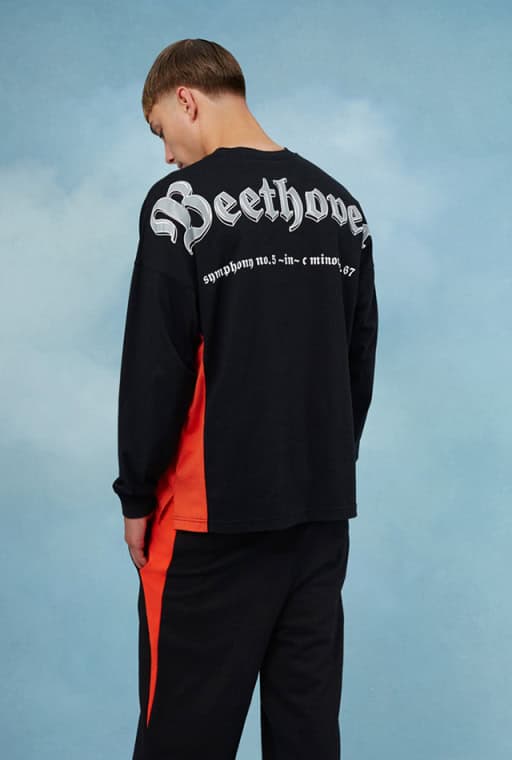 Using the historical concert tee as its symbolic center,  Opening Ceremony provides new in-house brand apparel.  Classic composers of the past are forced onto bold font choices placed on late 80s and 90s clothing silhouettes.  Names like Tcgaujivsky, Chopin, Bach and Beethoven are all ironically plastered on pinstriped jackets and tucked in crewneck sweaters.  Wide leg shorts and pants, oversized tops and a good amount of psychedelic stripe design are all worn by a model sporting a throwback bowl haircut style.   “We wanted to focus on all things we love in our wardrobes but mashed up.” said Humberto Leon, one half of the design duo behind the throwback collection.  Leon along with Carol Sim will begin to see their 90s era creations hit Opening Ceremony’s online and on site retail spaces during the 2016 Spring season.  Check out the looks in the gallery below.