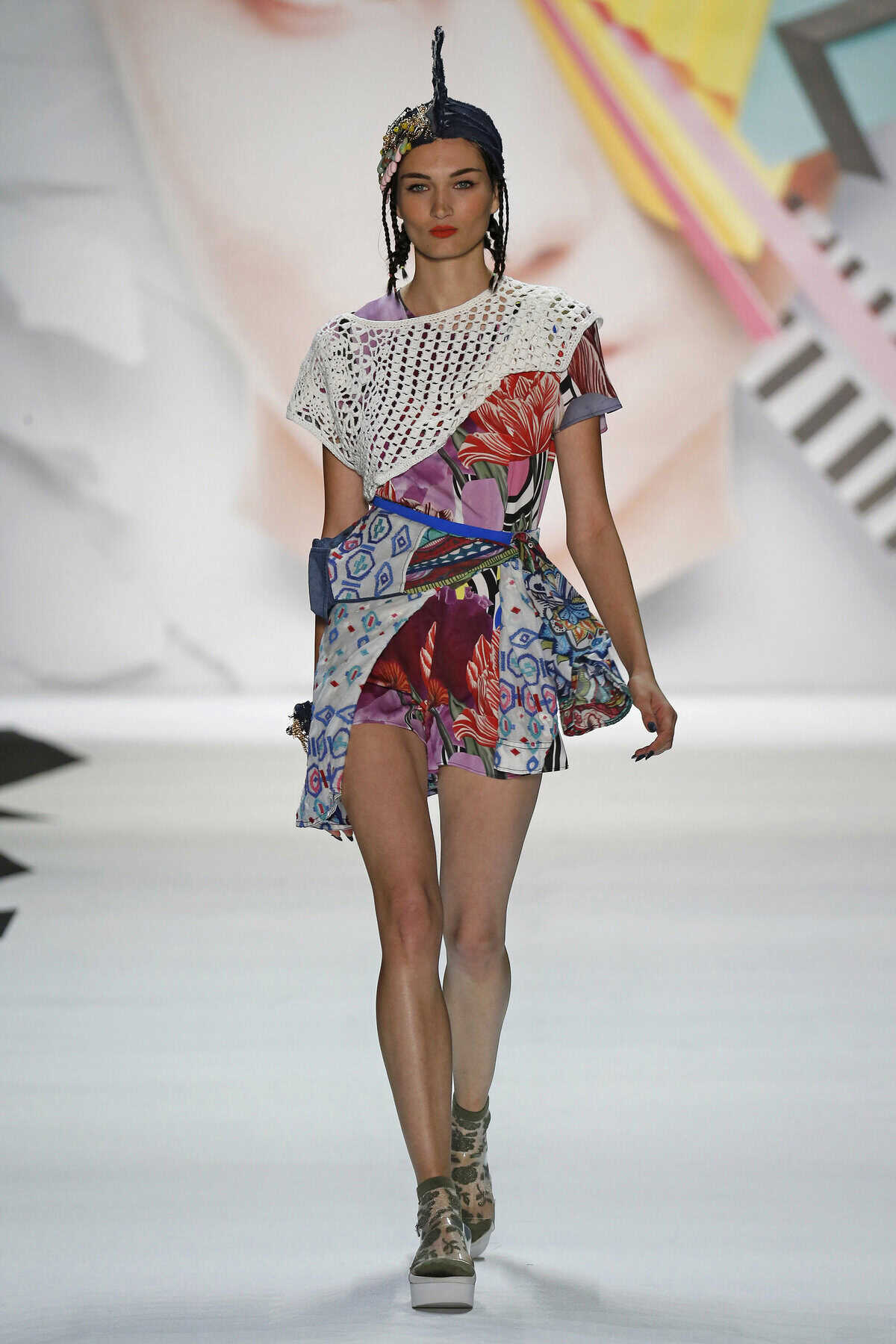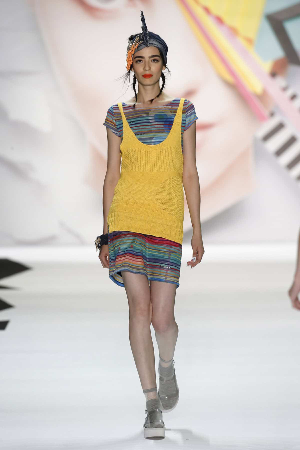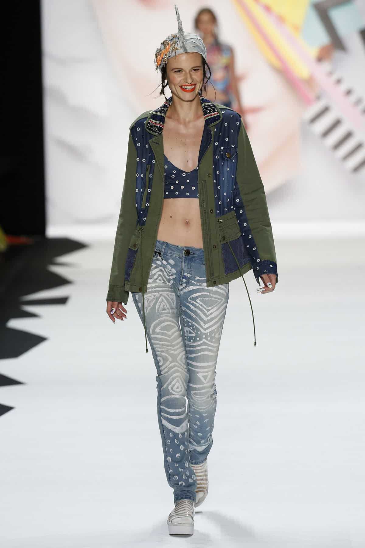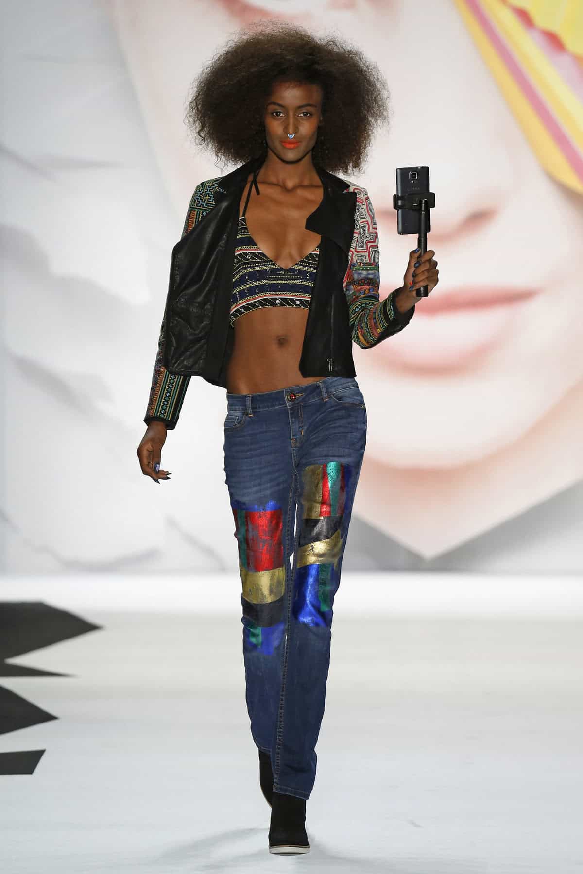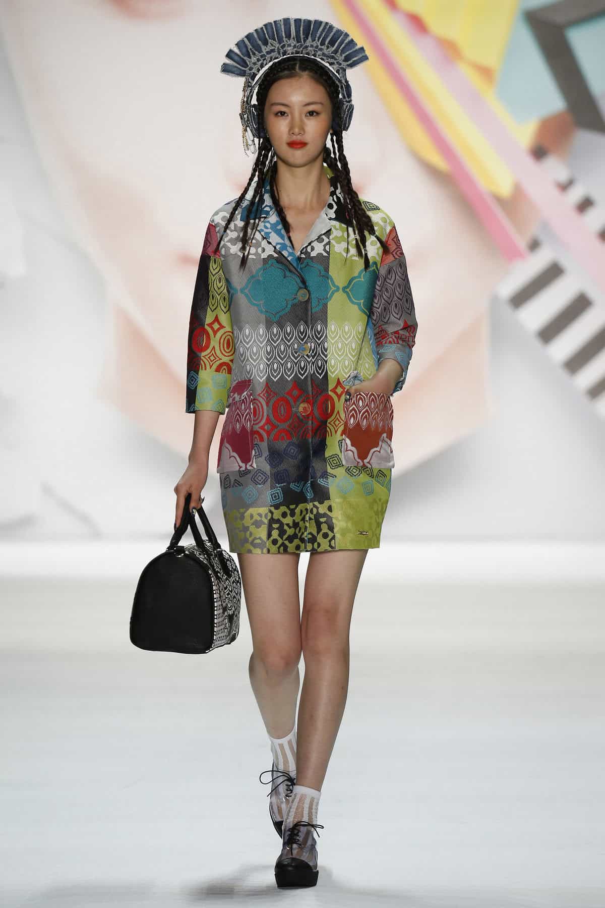 DESIGUAL’s Spring 2016 collection explored the modern day women with their bold and fun designs. Inspired by the city of Barcelona, BCN, La Ciudad Condal, the charming Mediterranean port town that’s always been home for DESIGUAL, this collection encapsulates the many styles for women all around the world. Stylist Misha Janette added feul to the entire collection with her eclectic style to showcase the daring, fearless styles of the city girl. Lauro Samblas, an artist from Barcelona, used colorful pop-inspired collages tapping into his boundless creative freedom to create the backdrop for the collection, making the setting way more lively and appropriate for the show.