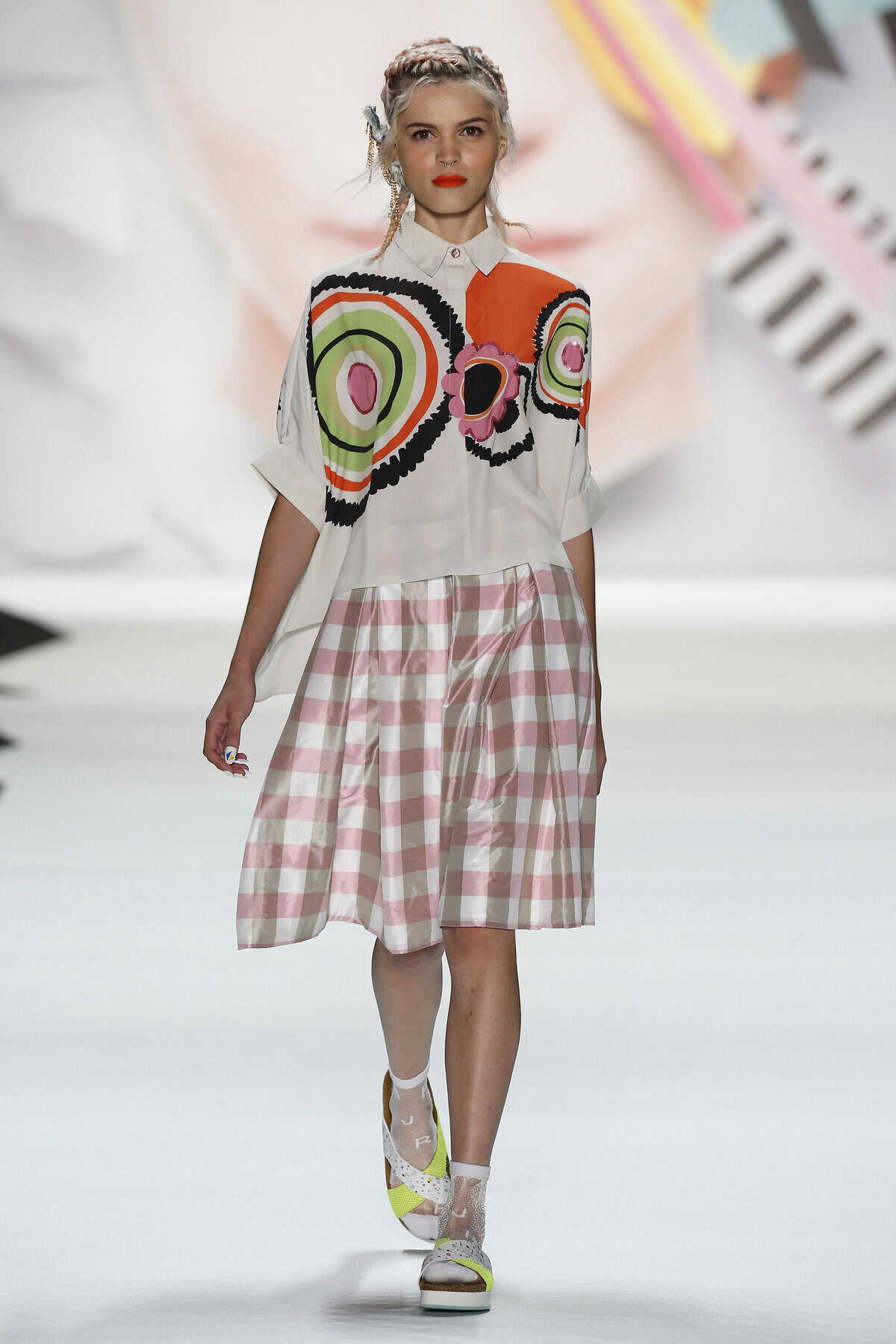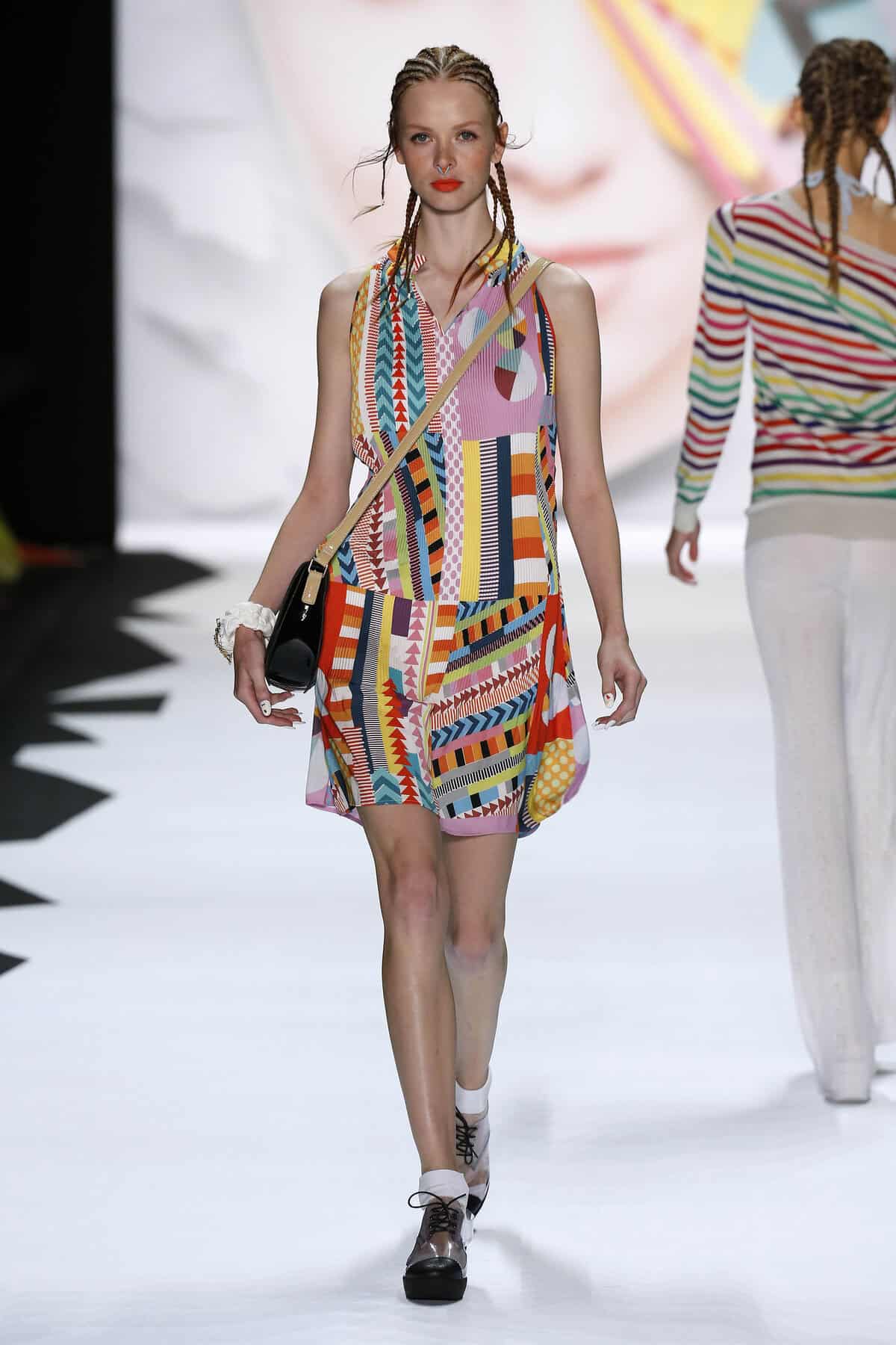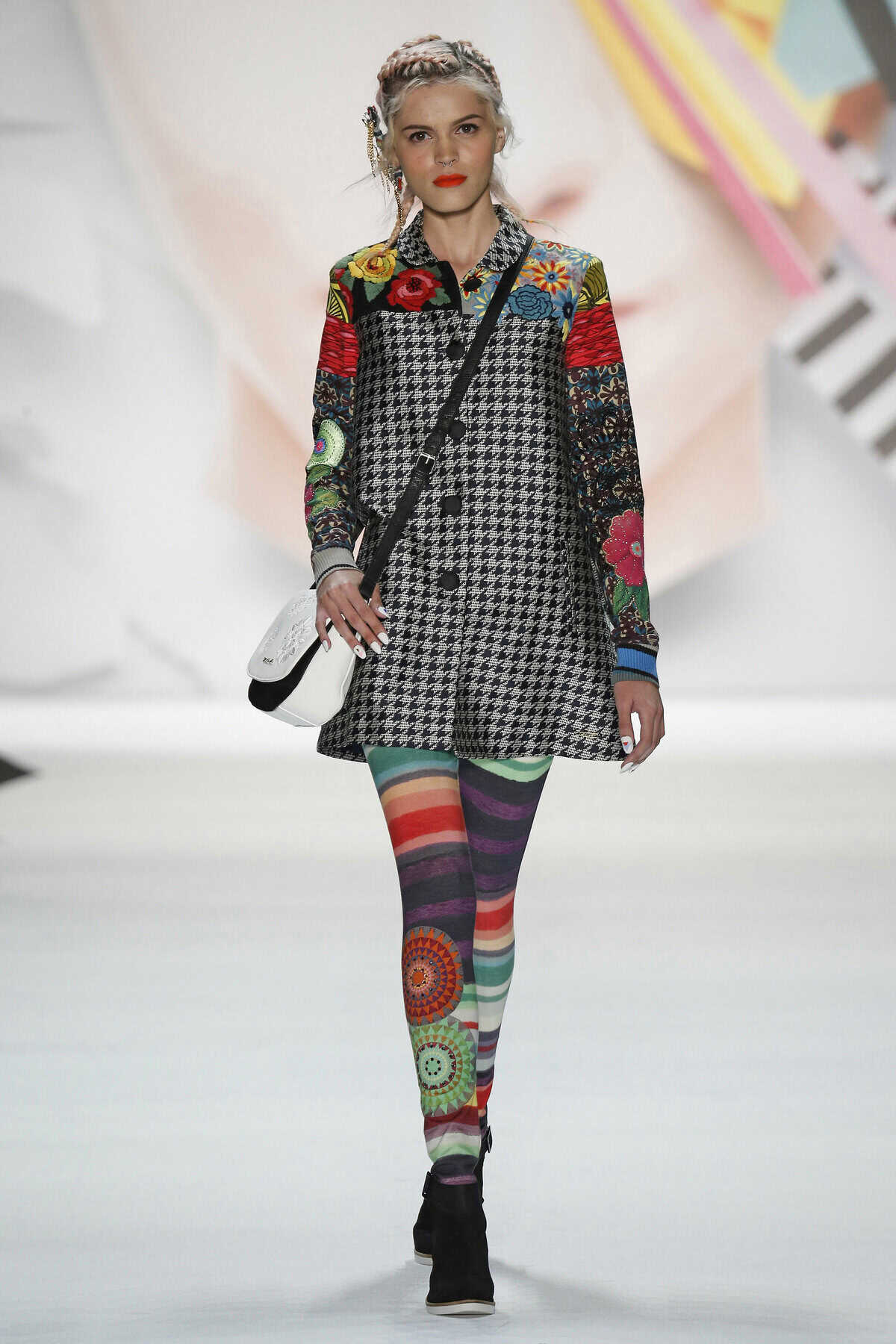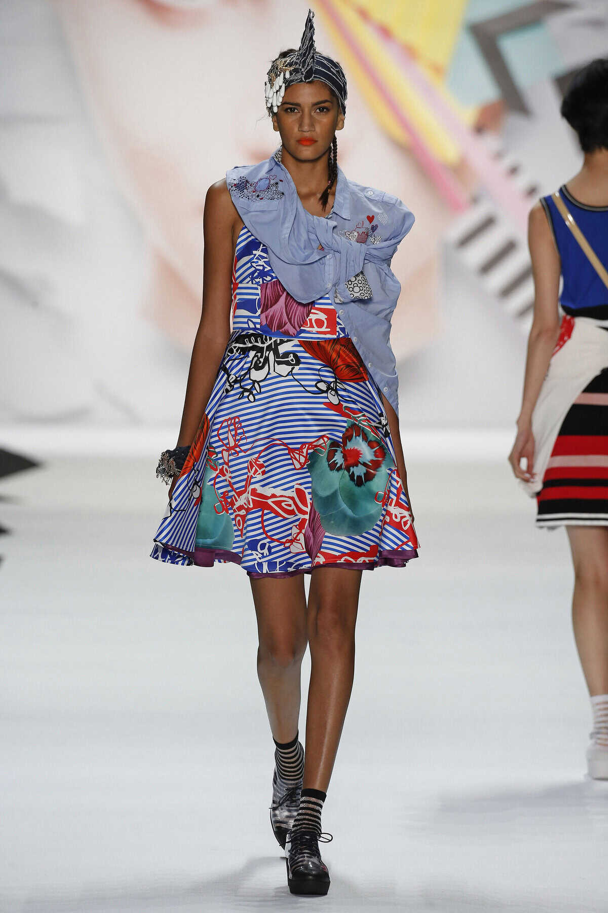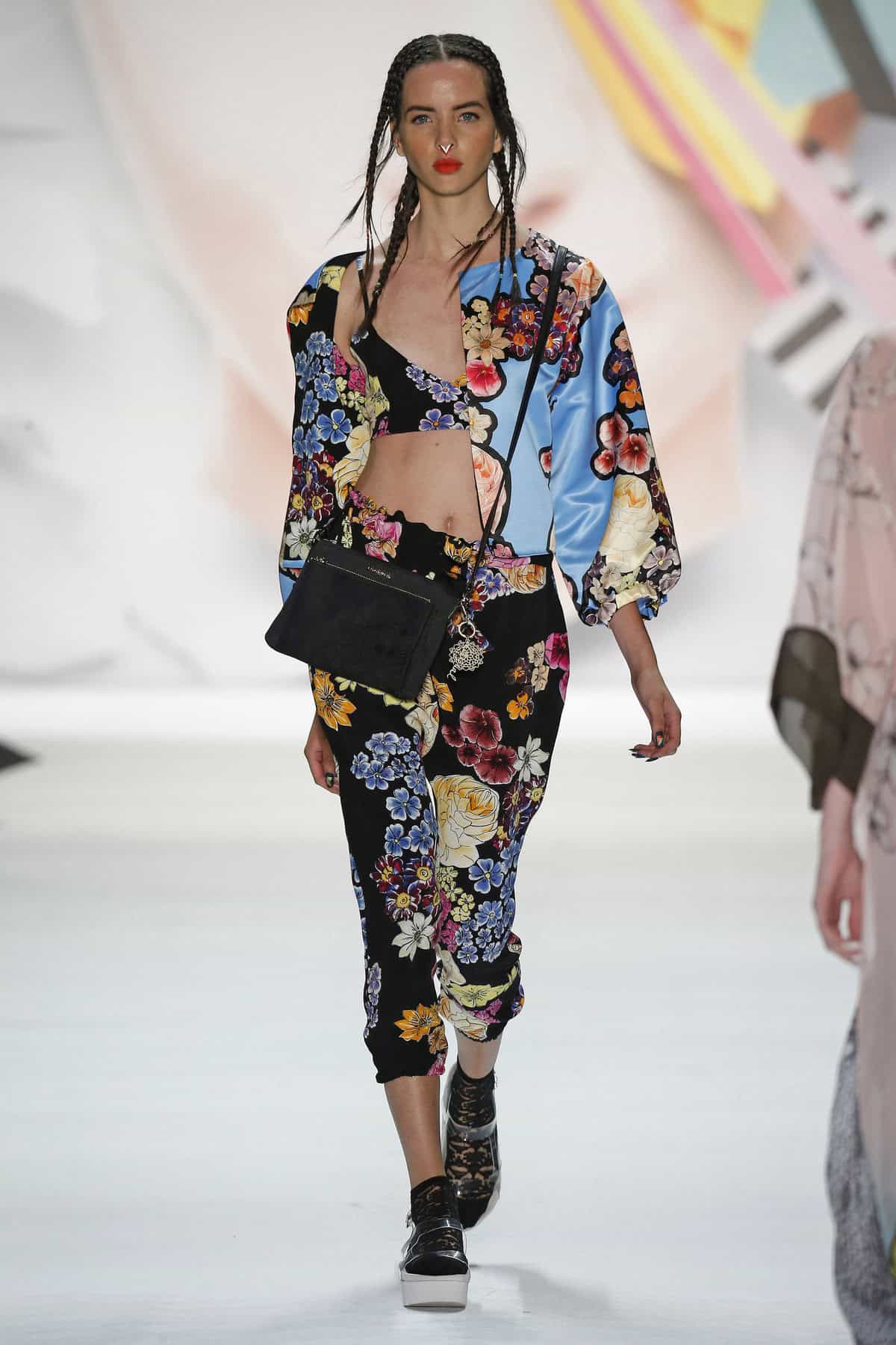 DESIGUAL’s Spring 2016 collection explored the modern day women with their bold and fun designs. Inspired by the city of Barcelona, BCN, La Ciudad Condal, the charming Mediterranean port town that’s always been home for DESIGUAL, this collection encapsulates the many styles for women all around the world. Stylist Misha Janette added feul to the entire collection with her eclectic style to showcase the daring, fearless styles of the city girl. Lauro Samblas, an artist from Barcelona, used colorful pop-inspired collages tapping into his boundless creative freedom to create the backdrop for the collection, making the setting way more lively and appropriate for the show.