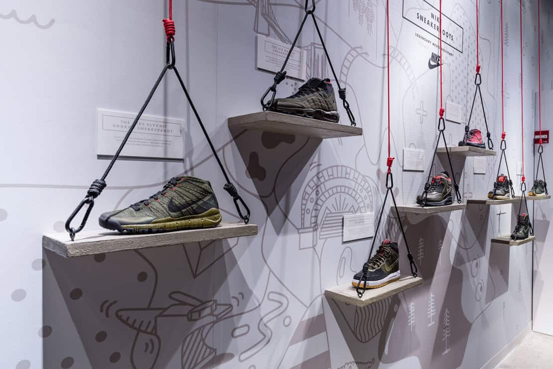 Nike has readied its latest winterized footwear for the fortchoming barrage of cold weather and has decided to show it off in a brand new themed pop up shop.  The storied sneaker provider has given its fans a personalized experienced located at 123 Bowery, NYC that offers a view of what is old and the sale of updated merchandise.  Offering a retrospective look at past ACG footwear and apparel as well as allowing potential buyers to try on sneakers they may not have peeped at any other Nike retailer, the new Sneakerboot 2015 Holiday Collection NYC pop up is a love letter to ACG.  With brand new Nike sweatshirts, jackets and other clothing items that all center around keeping the wearer warm, this winter retail hub provides for any Nike enthusiast who yearns to go in to the winter season prepared.