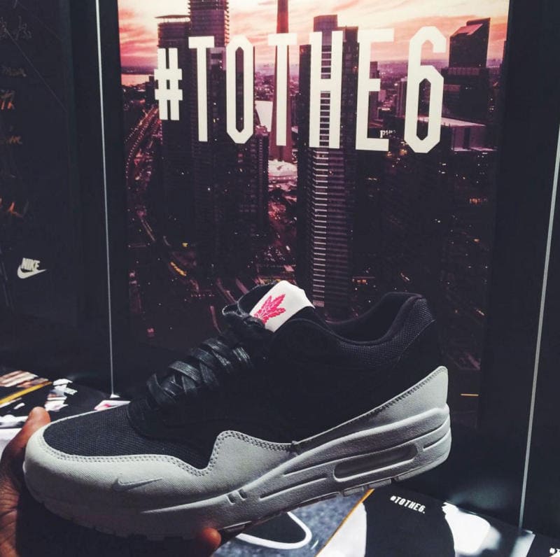 At the Soho House Toronto location yesterday, Nike revealed their homage to the True North. Dressing the famous Nike Air Max 1 in a clean black/white/red color way, the footwear provider has unveiled what looks to be a highly limited new kicks option. Featuring an all-white sole, matching mudguard and tiny swoosh branding, the sneakers are aesthetically pleasing yet the true appeal of the shoe is its ability to please members and fans of the 6. Displaying a maple leaf graphic on the front tongue and “The 6” on the back as well as a North emphasizing compass image on the heel, this particular version of the Air Max completely celebrates the Canadian culture.