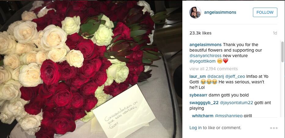 The Memphis rapper proved some men still practice chivalry, as he sent Angela a beautiful bouquet of roses she later posted on Instagram. Gotti even went a step further to prove actions speak louder than lyrics by making a personal appearance at the event to show his support.