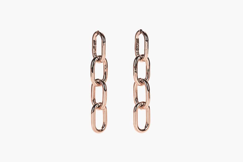 Alexander Wang has released an inaugural collection of finely detailed jewelry. Introduced as a part of the designer’s Spring/Summer 2016 show at New York Fashion Week, the grouping of hardware pieces features a bike chain inspired pair of earrings in both rose gold and rhodium, a double lock chainlink necklace and a padlock hinge cuff bracelet. Utilizing an aesthetic prevalent in the late 70’s, the bike chain necklace receives a high fashion makeover courtesy of one of the style industries most revered icons.