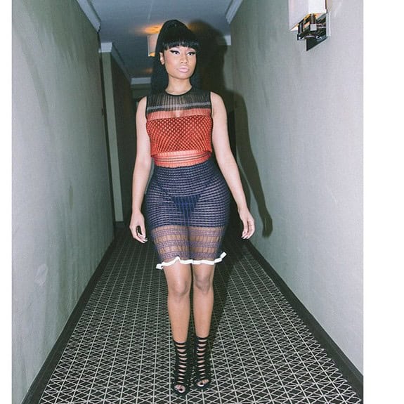 Queen Nicki and Alexander Wang are a perfect match. The designer’s wears do a great job at accentuating a voluptuous and developed figure and Nicki undoubtedly boasts such. Whether its in color fueled pieces or earth toned garb, Nicki Minaj dazzles in Wang, baring skin and greatly complimenting some of Wang’s most innovative work.