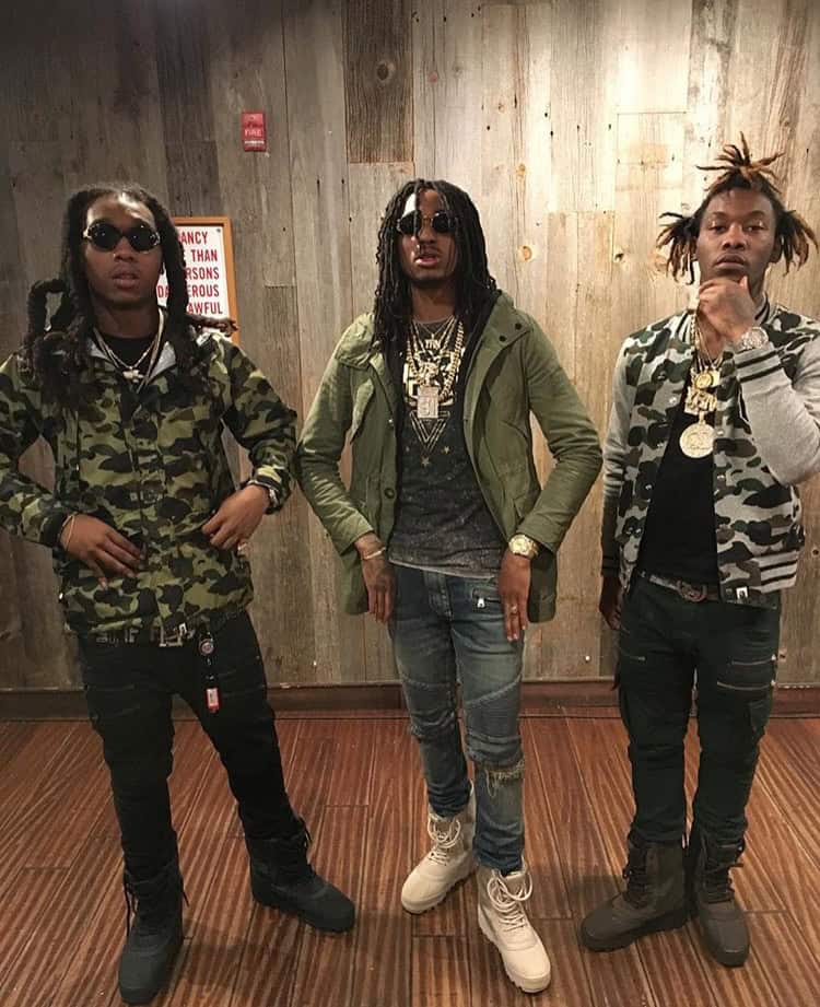 A trio of trap superstars and a global force, the Migos entire persona is based on stunting in street approved designs paired with high end footwear. The group consisting of Quavo, Offset and Takeoff can normally be seen adorned in a Bathing Ape camouflage on some occasions head to toe in the popular culture staple. The Migos possess an almost necessity for Balmain denim and consistently churn out eponymous designs with their own apparel label that stands for wealthy youth. The Migos made waves in the dance world with the “dab”and their consistent rocking of designer footwear from the likes of Giuessepe Zannoti and Christian Loubotin as well as a creative donning of the Yeezy Boost 750 has similarly forced other artists to follow suit.
