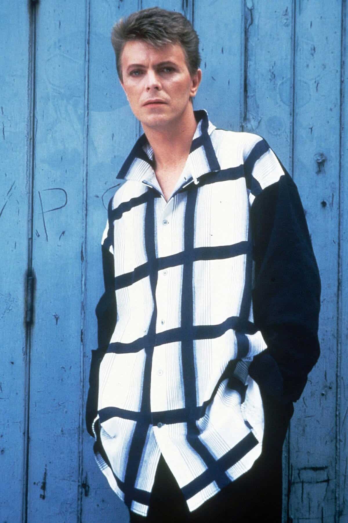 In 1983, hot off the success of the Nile Rodgers assisted “Let’s Dance”, Bowie ventured on the Serious Moonlight tour with a series of tonal two-piece suits, suspenders and ties. The 1980’s also saw Bowie transform on screen into the goblin king in children’s film Labyrinth, directed by the legendary Jim Henson. This transformation was the most contrasting Bowie had been spotted as since his Aladdin Sane character of the 70s. While off-screen coming into his own with stellar suits and almost streetwear like pieces like an oversized check shirt, Bowie found his own character and its presentation to the world proved always fashionable.