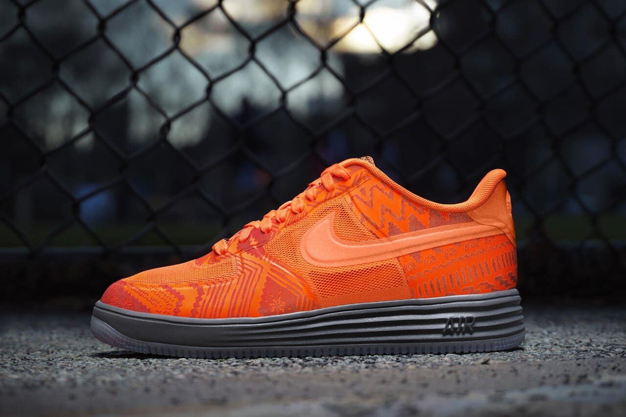 Sticking with a bright hue of orange, the 2013 Nike Basketball BHM pack featured the trio of signature footwear from the athletes currently poised as the best on the court. A grouping of KD Vs, Lebron Xs and Kobes VIIIs all possessed a significantly African inspired tribal print. The collection of basketball footwear dropped on Martin Luther King day furthermore demonstrating the true meaning for its spawning. An ethnic printed, ostentatiously bright pair of orange Air Force 1s also attached themselves to Black History Month that year.