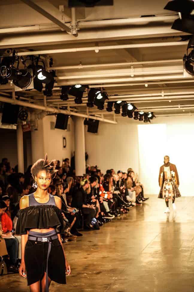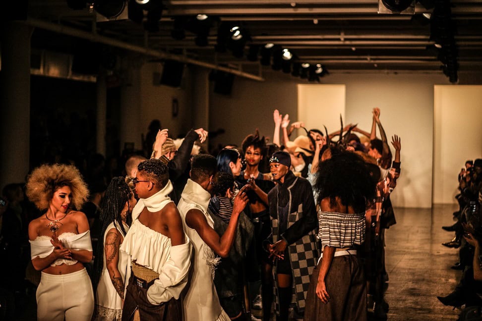 The show was packed out with celebrity appearances like Whoopi Goldberg and Justine Skye on the runway, and the experience and looks were fun, artsy, unusual, and refreshing to modern taste. One model was even seen carrying a baby, and the closing runway group dance gave the crowd an overload of energy.
