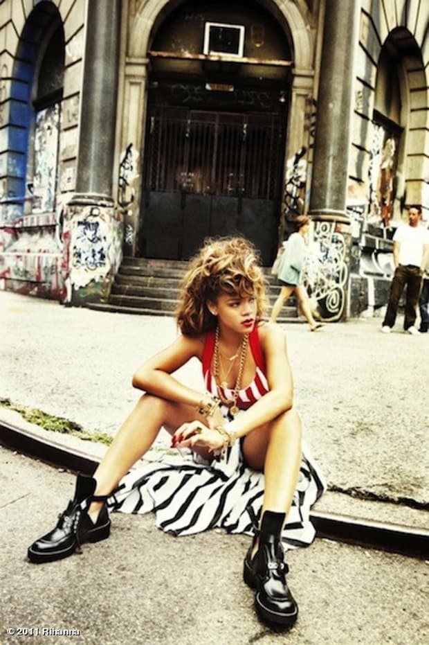 Looking sickly disheveled in Balenciaga cut out sandals, Rihanna promoted her sixth studio album with a decidedly rock influenced style. Still under the helm of Nicolas Ghesquiere in 2011, Rihanna would continue to wear Balenciaga when it was directed by Alexander Wang later on.