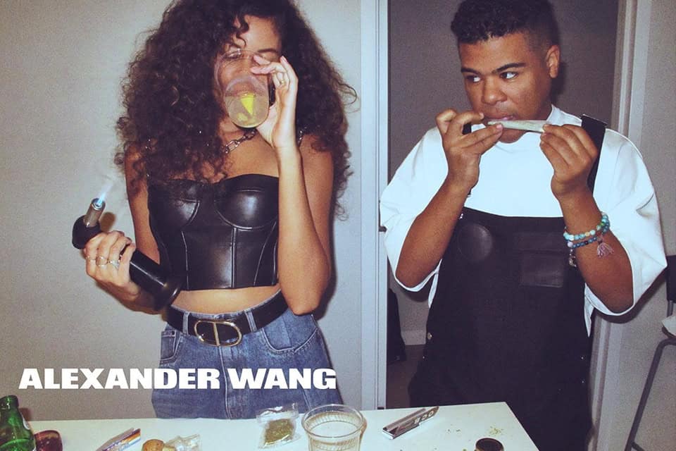 One of the most well known and renowned designers of modernity, Alexander Wang is always in tune with a youthful design and aura. Newly unveiled, the campaign for the designer’s latest collection of Spring/Summer 2016 goods has drafted a host of hip hop characters and models alike. Vic Mensa kisses on a brooding Anna Ewers, Korean pop starlet CL sports striking lavender hair, Crystal Castles’ songstress Alice Glass and rap stars Travis Scott and ILoveMakonnen all make appearances. Combining the worlds of music and modeling, the new photos show off updated threads from Wang on a group of all around culture providers.