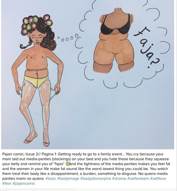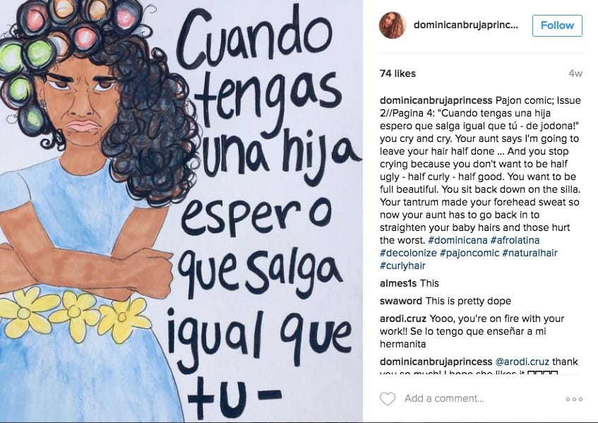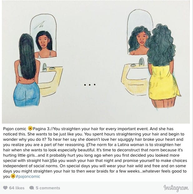 23 year old Connecticut artist Crystal Rodriguez created Pajon Comic which sends a powerful message to Afro-Latinas about body and hair image. For generations, women were pressured by society to confirm to generic norms in regards to hair and body shapes. Minority women were taught to embrace straighter hairstyles and slimmer body figures and these generic thoughts caused great affliction.