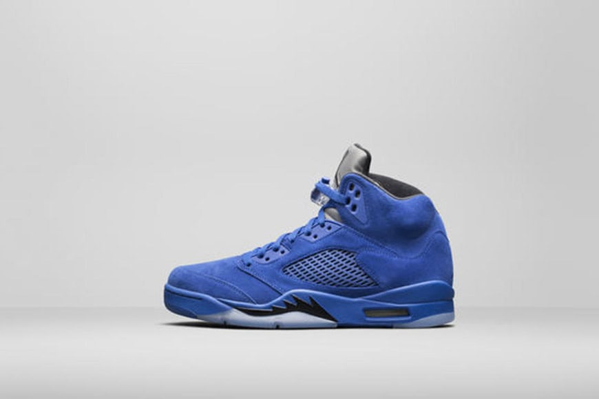 The Jordan brand highlights the Jordan 5 upcoming season release with their retro re-up. The silhouette was originally inspired by the MJ high flying dunks and WWII fighter planes. Now – the sneaker will have five new colorways with Bred and Royal-inspired features along with a cement color, camo, and black-on-black style.