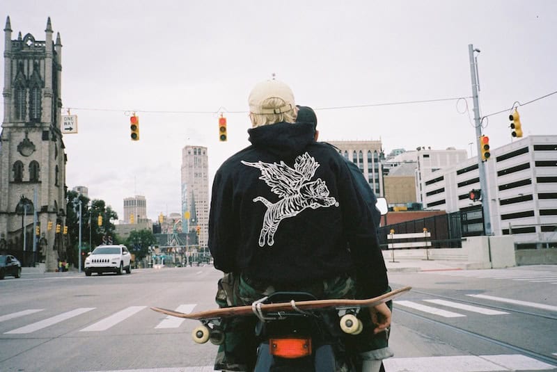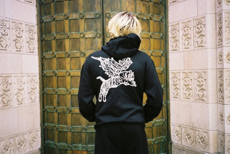 Burgeoning skateboarding brand Seshed Up has recruited Lil Yachty and skater Aaron Goure for a lookbook featuring the label’s first ever collection. Rocking a hoodie featuring a flying tiger print and embroidery, Yachty poses atop a regal looking throne chair. Founded by Akhil Sesh who directed, shot, designed, & provided the soundtrack for this editorial, Seshed Up also shot a campaign skate video interestingly on VHS.