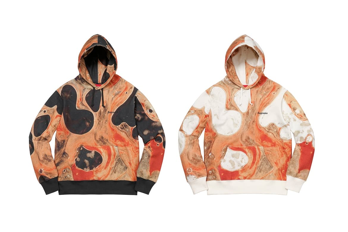 Displaying and using art pieces Piss Christ, Madonna and Child II and Blood and Semen II, Supreme has created a plethora of clothing items. From hooded sweatshirts, sweatpants, graphic tees, to a Vans collaboration consisting of a Sk8-Hi, Chukka and Old Skool, all the street wear staples are present.