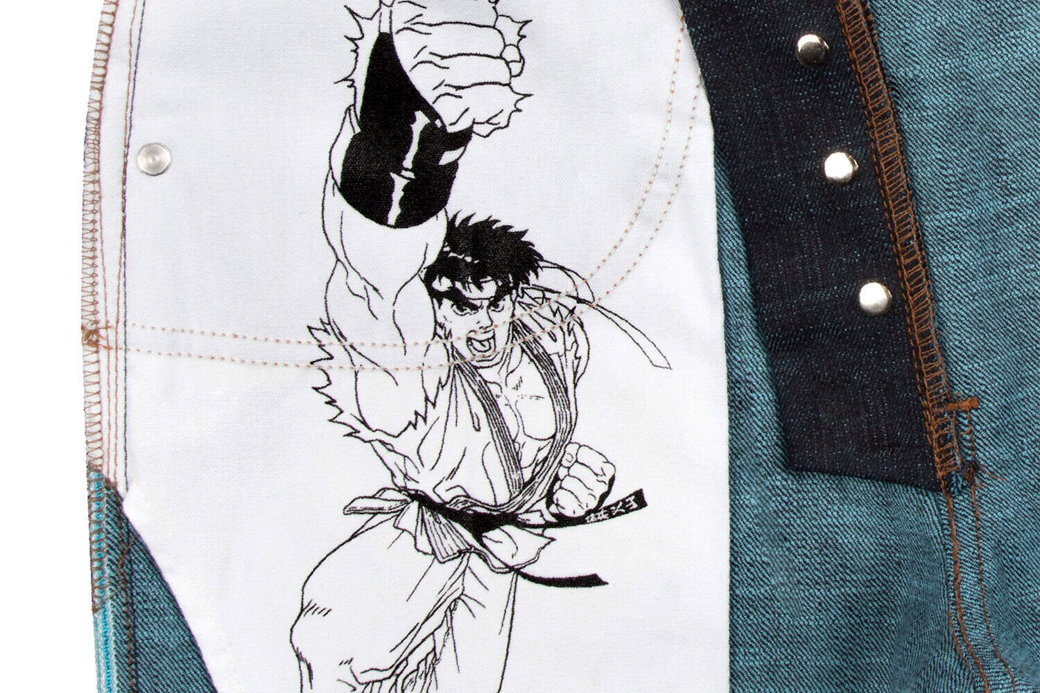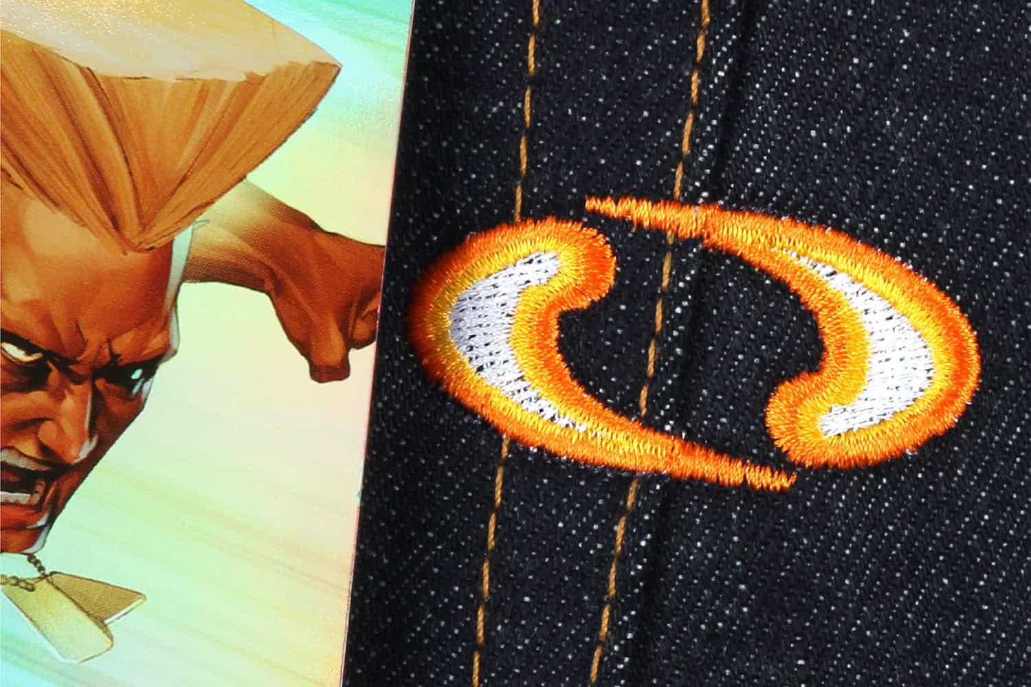 Ryu and Guile. Each pair of raw denim jeans designed to personify the personality of the characters they were inspired by. Available in two styles, the “Ryu hadoken” selvedge and the “Guile sonic boom” selvedge.