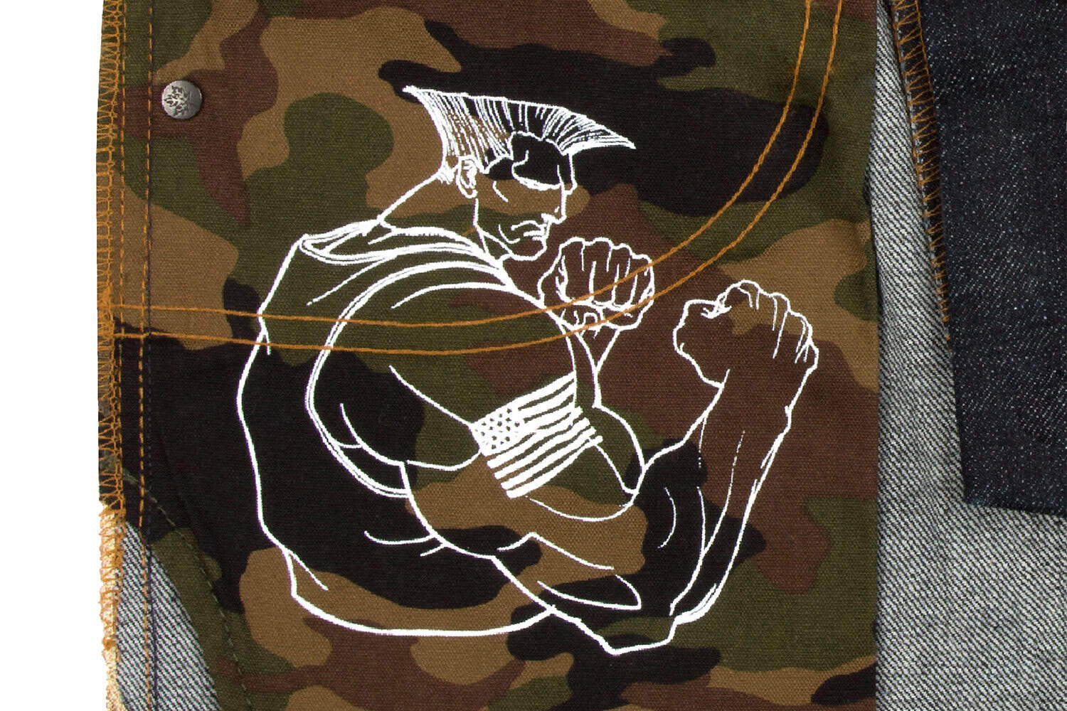 Naked & Famous Denim is teaming up with the legendary video game brand Capcom for a unique release. This collaboration is focused around the fan-favorite arcade classic, Street Fighter 2. Secondary details include: a metallic foil stamped natural tan leather patch, signature icon pocket embroidery, character artwork printed pocket bags, and holofoil pocket flasher featuring artwork by Udon Comics.