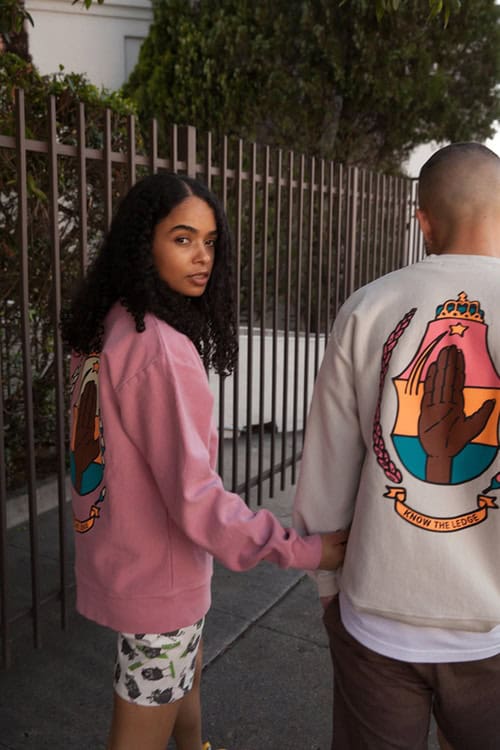 Arriving as a part two delivery, the new collection includes long-sleeve and short-sleeve tees with motifs inspired by the Black Power Movement. These pieces extend on a theme that was previewed earlier, which include bowling shirts embroidered with the names of black activists Charles Mingus and Stokely Carmichael.