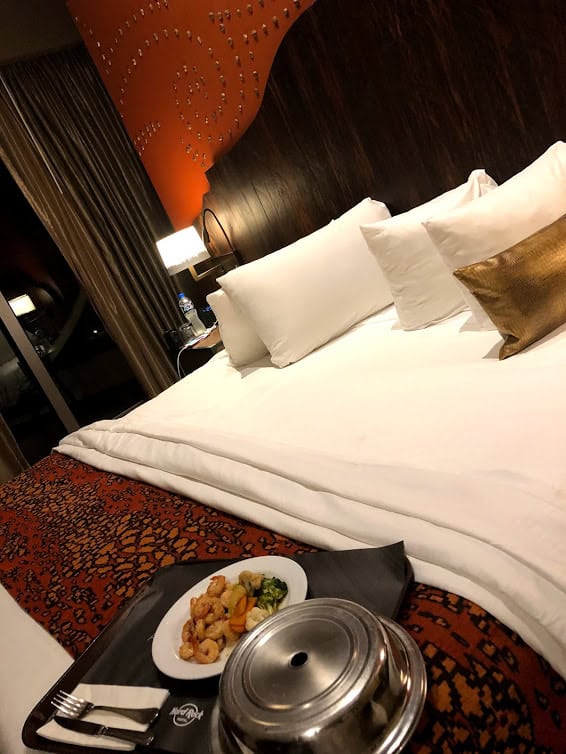 Next we hit up the main infinity pool which offered the most picturesque postcard-worthy scene. The poolside service was immaculate as they served BBQ food, wings, nachos and tasty beverages to quench your thirst in the hot sun. We spent the day exploring the hotel for cool memorabilia and munching on pizza at the beachside brick oven pizza hut.