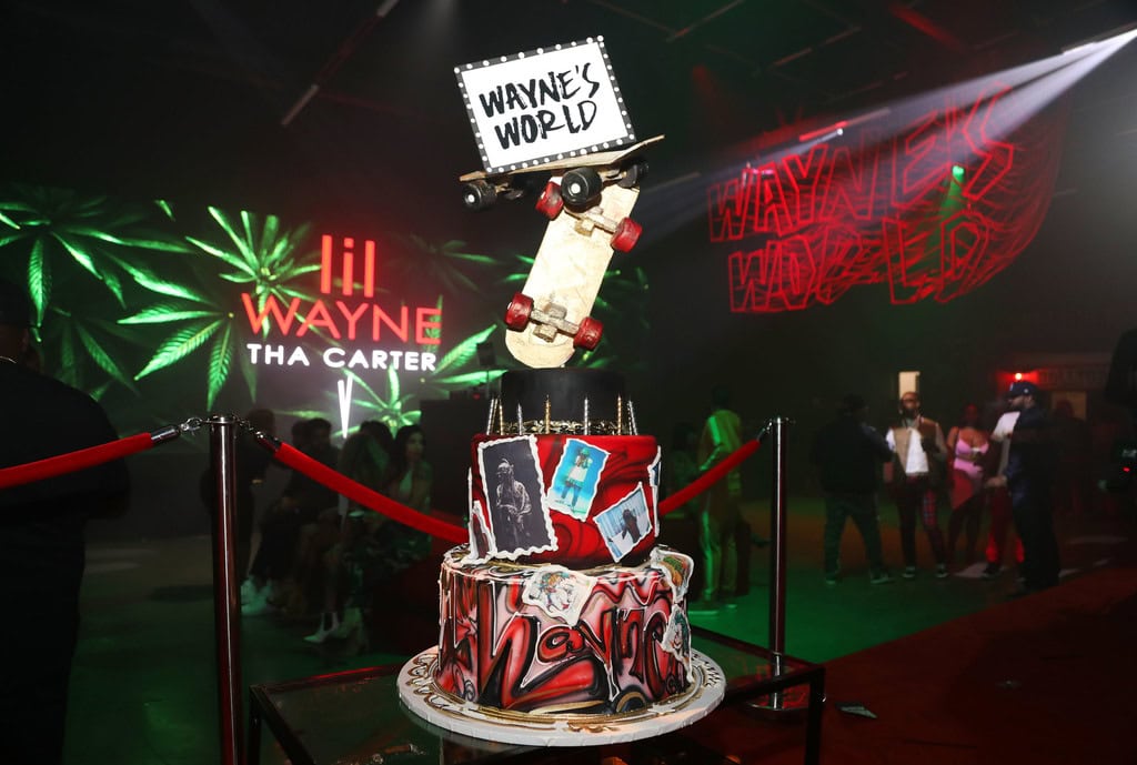 The party, nicknamed “Wayne’s World”, was a long-awaited celebration and featured many of the rapper’s favorite things…traditional New Orleans food (as catered by Trap Kitchen), candy and marihuana bar while a skate ramp outside played host to tricks and ollies from skateboarders all night. Just when you that was all, the party also featured two real-life goats to pay home to our own Greatest of All Time.