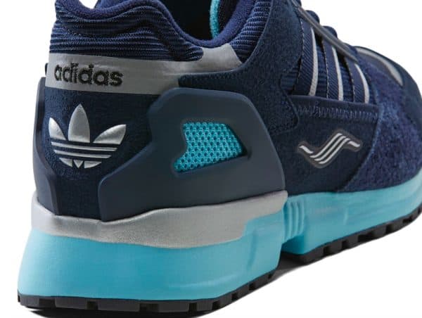 As its name suggests, the latest version of the shoe, the 10,000 JC, puts Jacques Chassaing’s personal role front and center – most explicitly by adding his initials to the branding on the tongue. The dark navy uppers are crafted from a premium blend of suede leather and other natural/technical fabrications that reflect the understated colors and textures Jacqus Chassaing often wears. The toned-down aesthetic also allows the ahead-of-their-time technologies to take centre-stage. Mesh underlays are complimented by a webbed, Torsion-branded panel across the ever-iconic three stripes. A TPU support on the heel draws attention thanks to a flash of aqua blue – a color synonymous with the ZX series, and one that also appears to most eye-catching effect across the entirety of the 10,000 JC’s midsole.