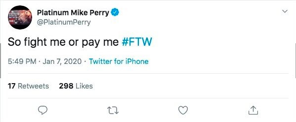 Is Mike Perry just writing checks with his Twitter fingers that his ass can’t cash?